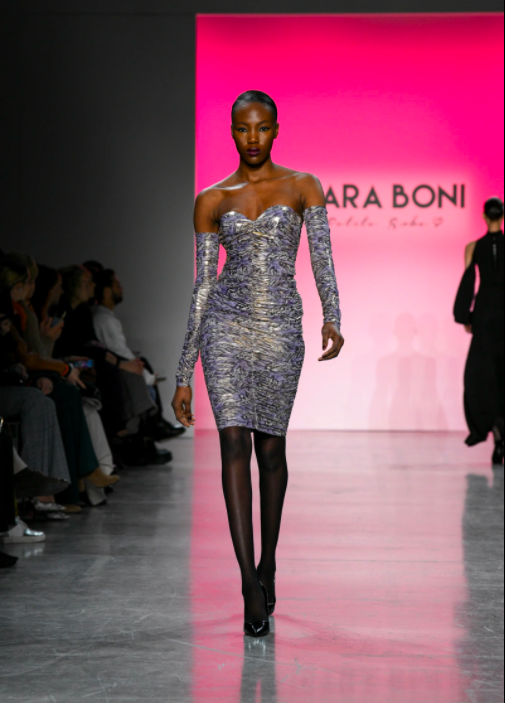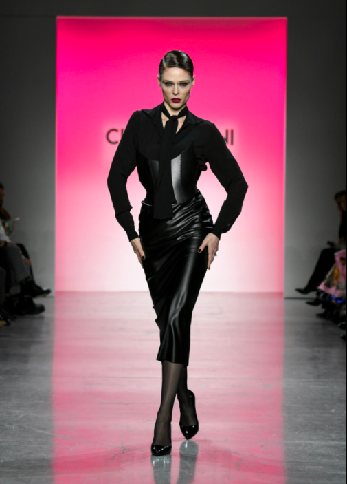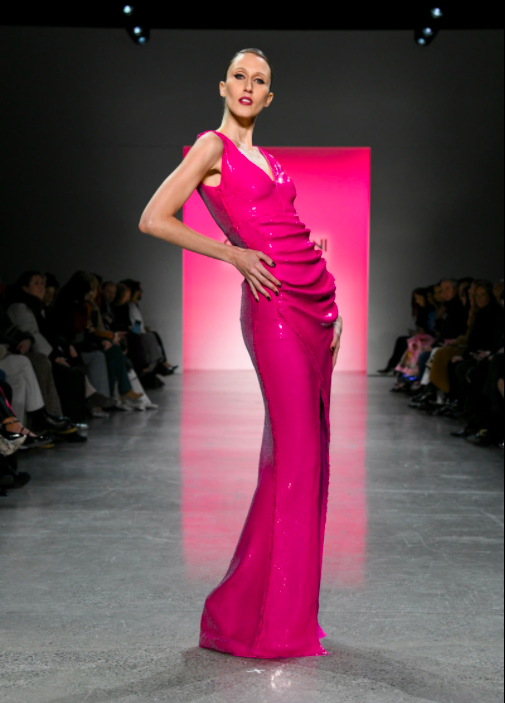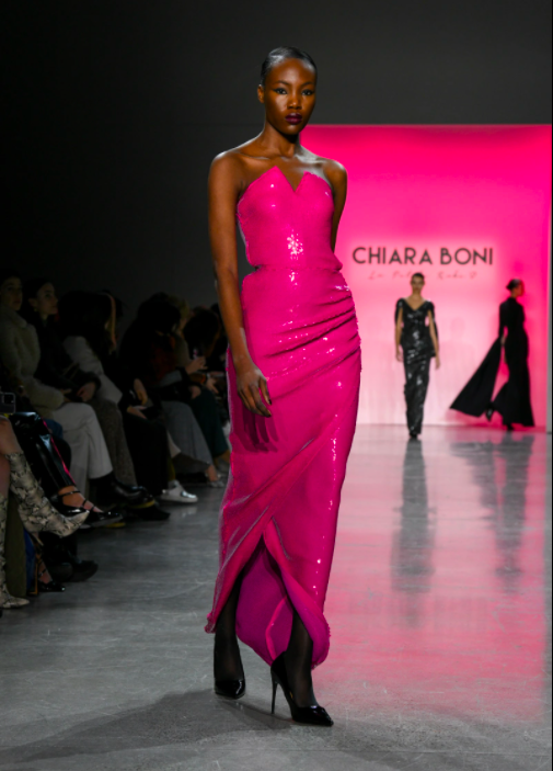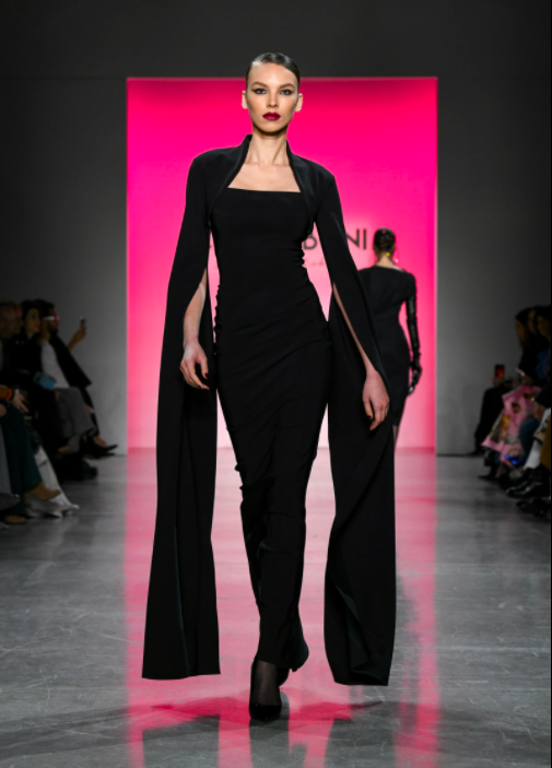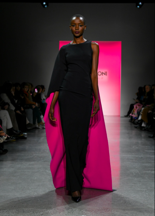 In addition to using darker shades of ebony black, Boni also incorporated floral iridescent fabrics and utilized hues of fuchsia and magenta, which undoubtedly is the color of the season. Along with being unafraid to take risks with vibrant shades, Boni also took her line up a notch with her use of accessories that demonstrated her Italian roots.