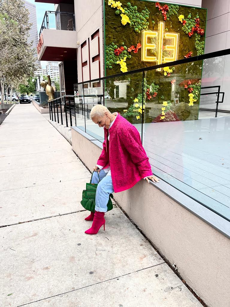 The advice that Shayla Bang gives other Bombshells is that, it’s so important to step outside of your comfort zone even if that means incorporating a statement piece, colorful shoes, or playful accessories…“try it before you deny it,” expresses ShaylaBang.