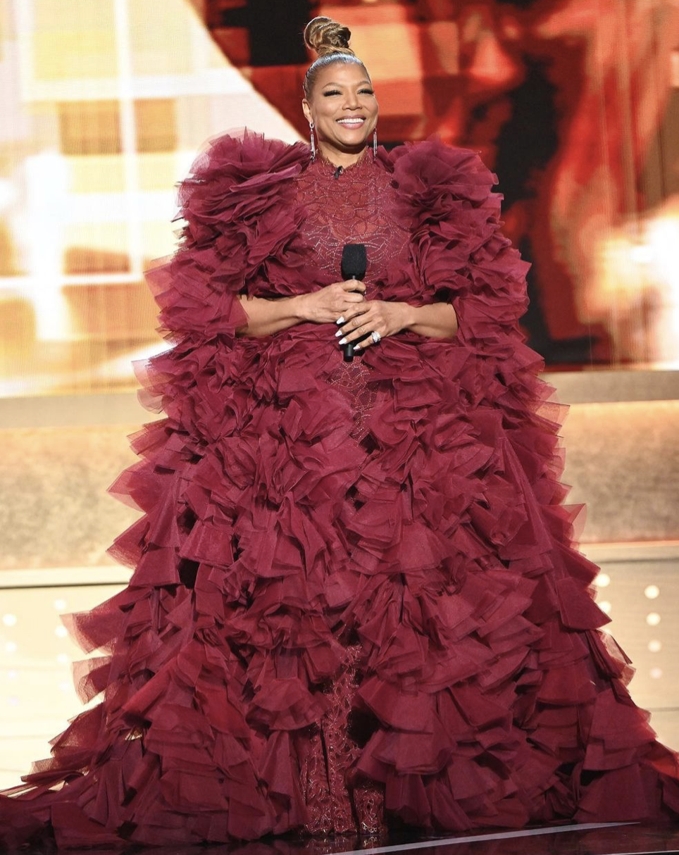 Queen Latifah who hosted the event looked flawless and stunning in a maroon Tony Ward Couture gown that was voluminous with tulle. She also rocked a classic black and white Bibhu Mohapatra gown and accessorized with black gloves and diamonds that made us want to call her “your majesty.”