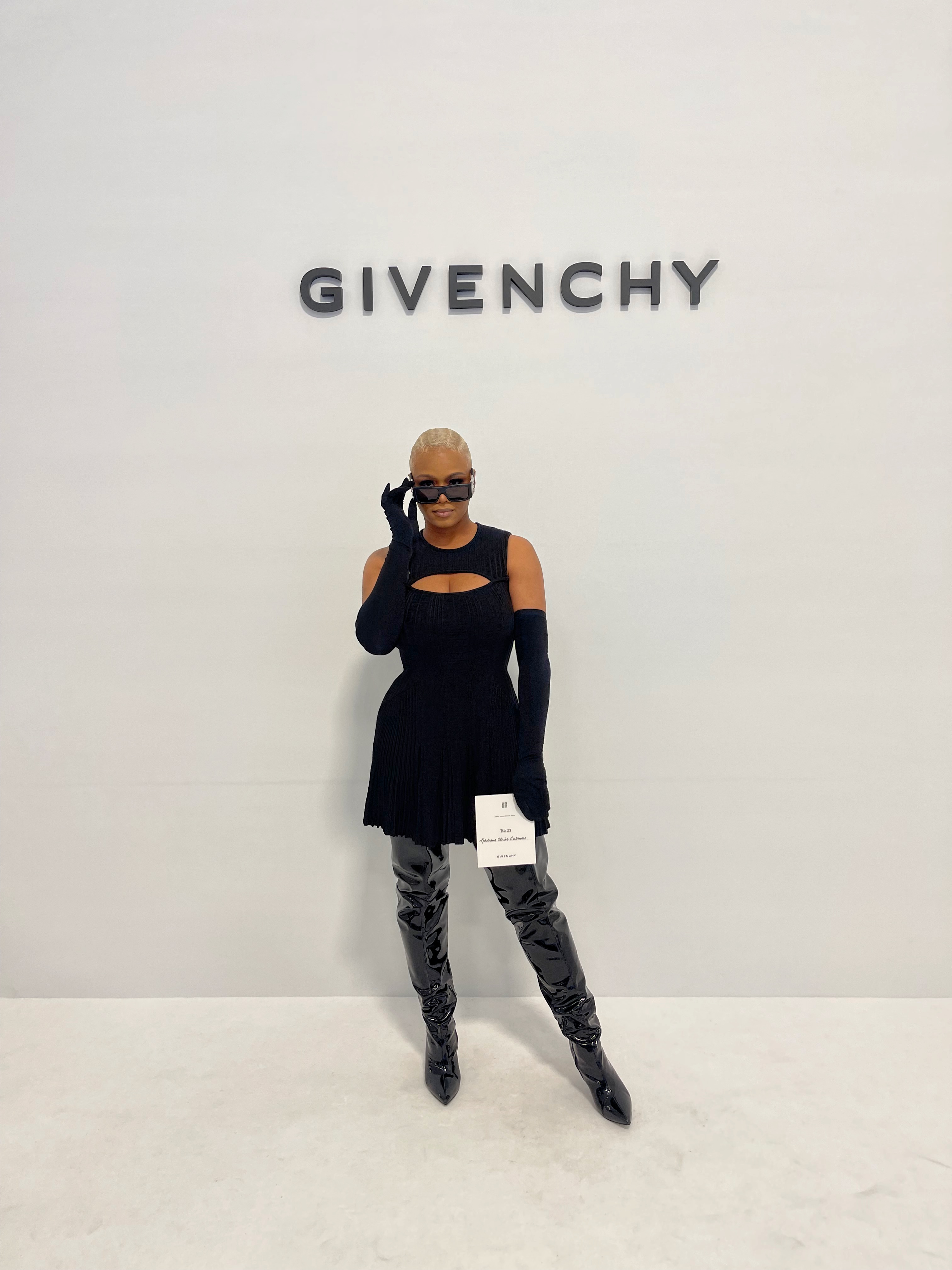 She looked incredible in her black Givenchy cutout flare dress, that was styled with black gloves, Givenchy shades and Cult of Coquette patent leather thigh high boots from the BeautyLifeFun shop. As she brilliantly strutted inside the venue, paparazzi snapped her photos and captured the media maven in all her glory.