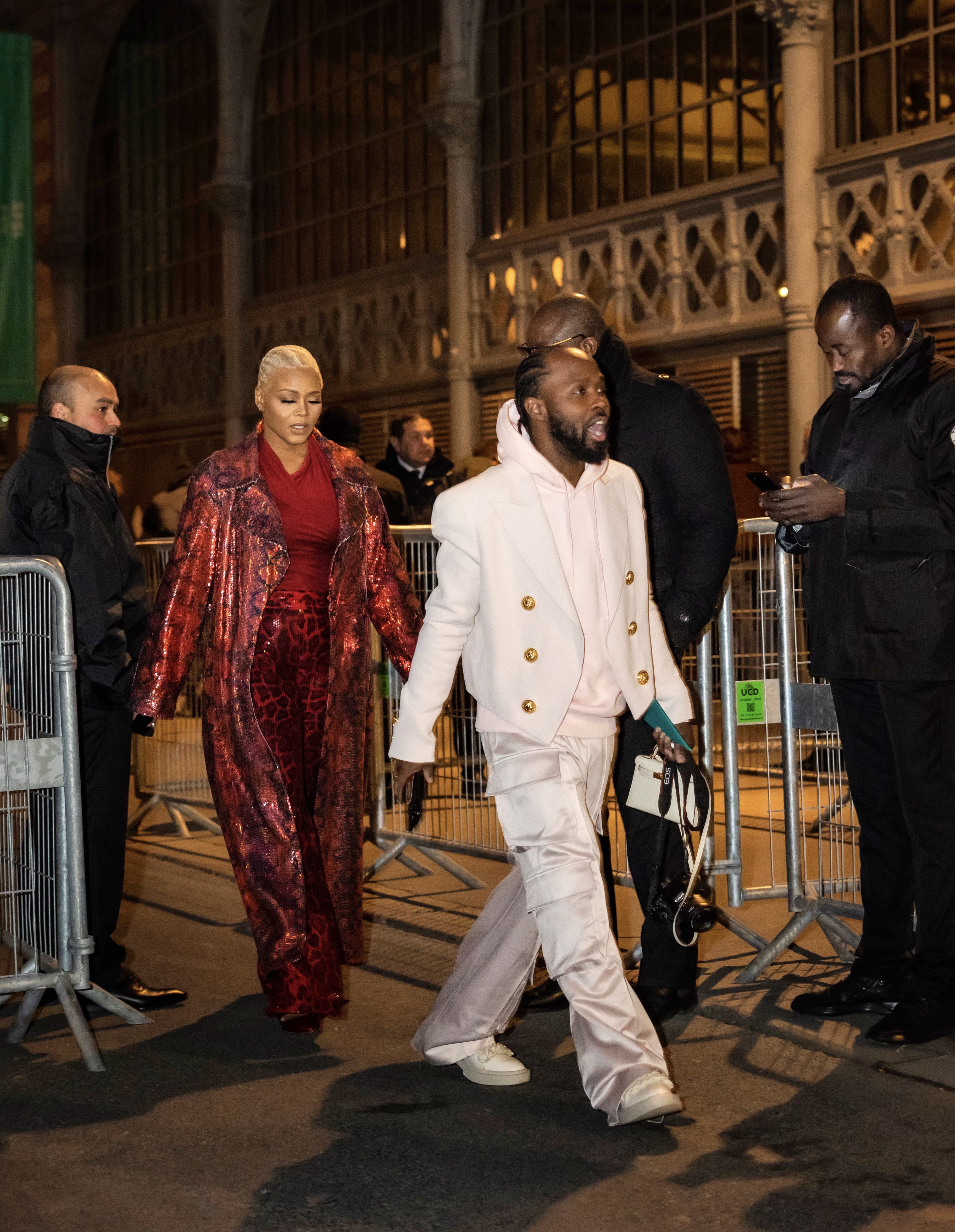 Despite some of the hiccups that Claire encountered while on her Parisian excursion, such as her flight being postponed and her bags being delayed, you wouldn’t have never known based on how flawlessly she looked. Claire wore a red snakeskin Ivy Park sequined duster with a wrap blouses and red snakeskin pants from Neiman Marcus.