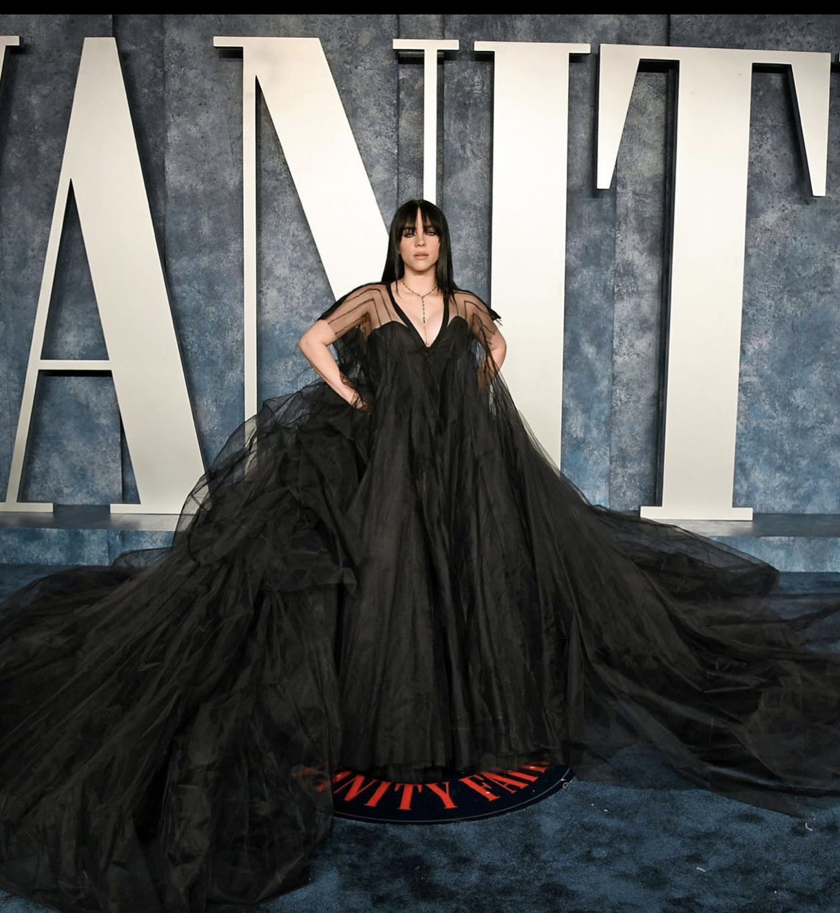 Singer Billie Eilish who already has an Academy Award under her belt at just 21 years old, arrived to the red carpet in a black tulle Rick Owen ensemble that gave us Wednesday Adams vibes and exuded power and confidence.