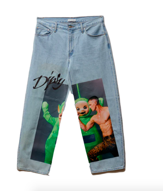 The limited-edition collection features graphic tees, hoodies, and denim printed with images of the popular characters. There is, however, a standout in the collection – knee-high Dipsy boots adorned with his head atop each shaft.
