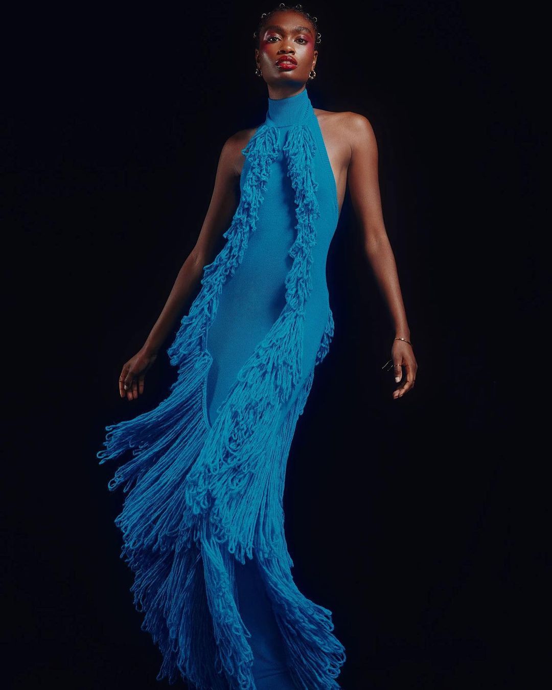 Jesseca’s long tresses were split down the middle with a bright pink on the right side, while the left was a cool blue. Da Brat had her pink and blue coils mixed and styled with a pink and blue bandana. While Jessica wore the ocean blue Mina tassel knit gown by Hanifa, styled with a pink Valentino belt, Da Brat pulled up in a more street-centric look wearing a light pink crystal-covered sweatsuit by Pure Atlanta worn with the brand’s blue and pink KASH letterman jacket and blue Timberland boots.