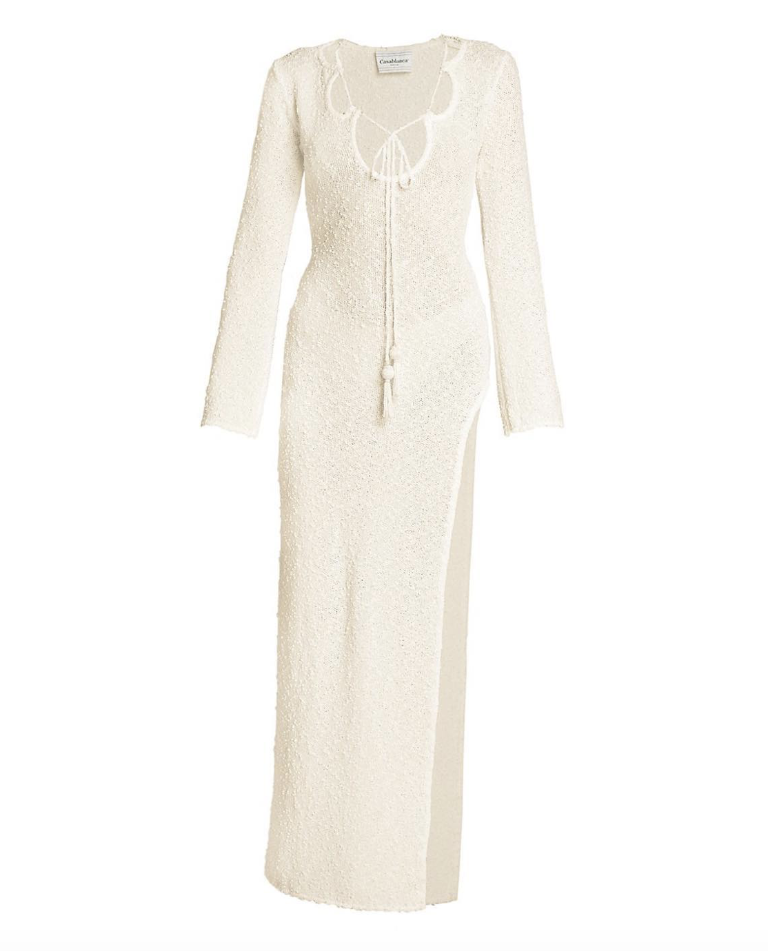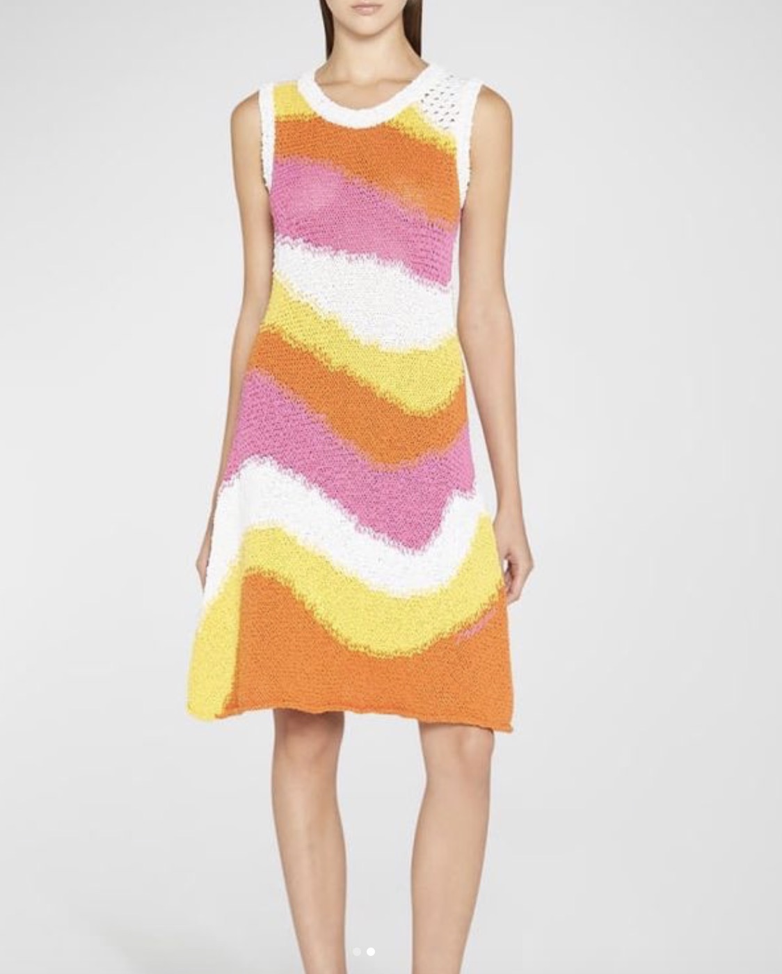 Lori is definitely an example of how to pack when leaving for a mini tropical vacay. The model also threaded through a larger water terrain in a nude $1,060 Casa Blanca Boucle dress that had cutouts near the bust and a high slit. Along with her go-to straw hat this vacay, she paired this look with Chanel shades, and a straw tote bag.