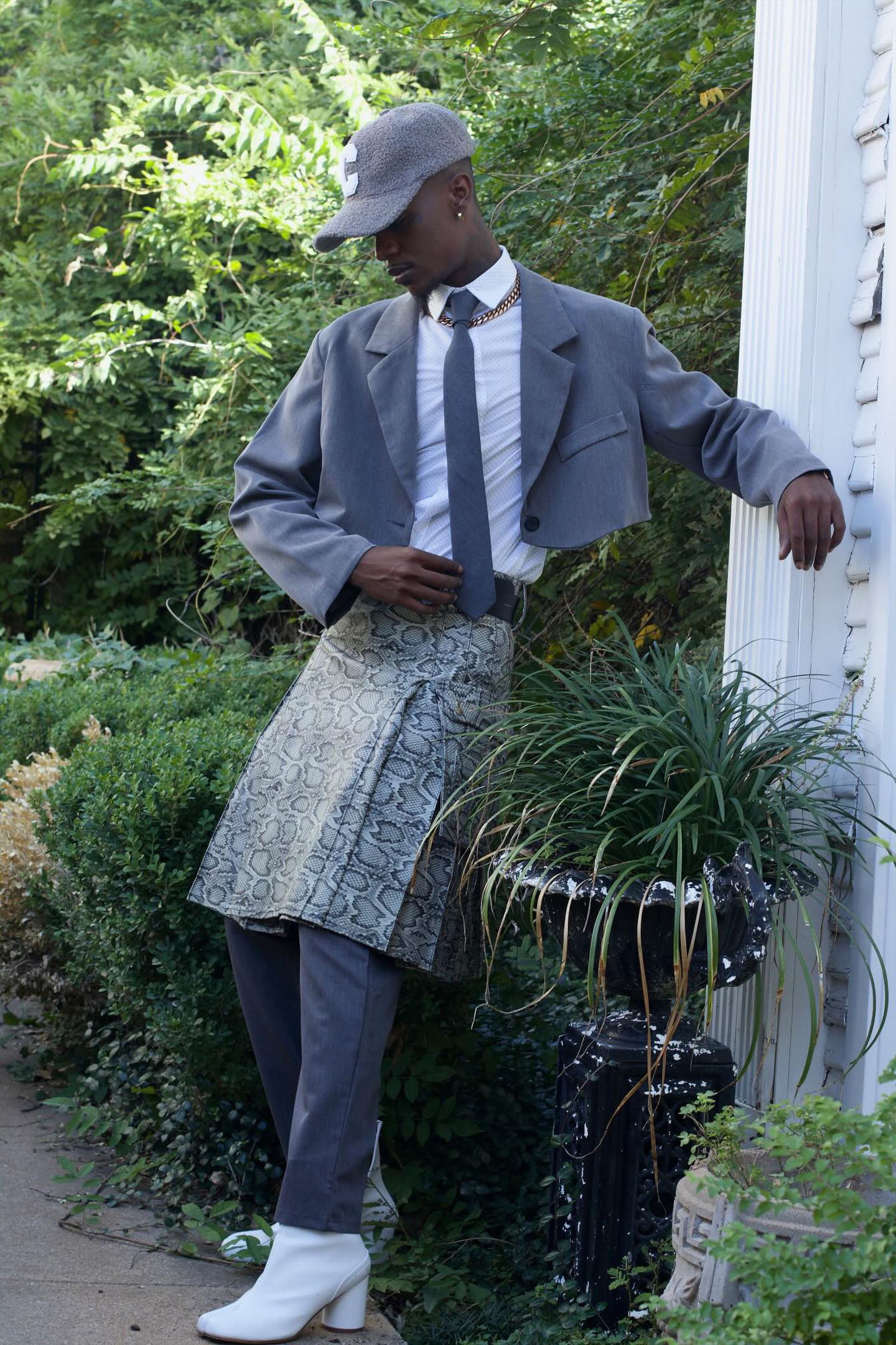 Just like a stylist, Howard is passionate about creating moments with fashion. He uses his style as a beacon for young boys and men ––like himself–– who don’t fold into the societal roles placed upon them. He’s known to turn a few dresses and skirts and has no issue layering textures or styling highly saturated hues.
