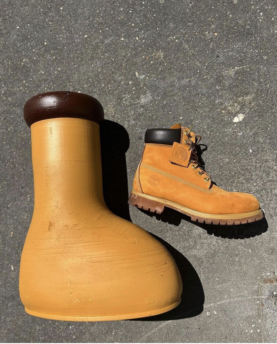 Could viral potentially be an understatement? The MSCHF big red boot just took an unexpected turn, this time resembling the traditional Timberland 6-inch premium boot, and wrecking havoc amongst social media for better or worst.