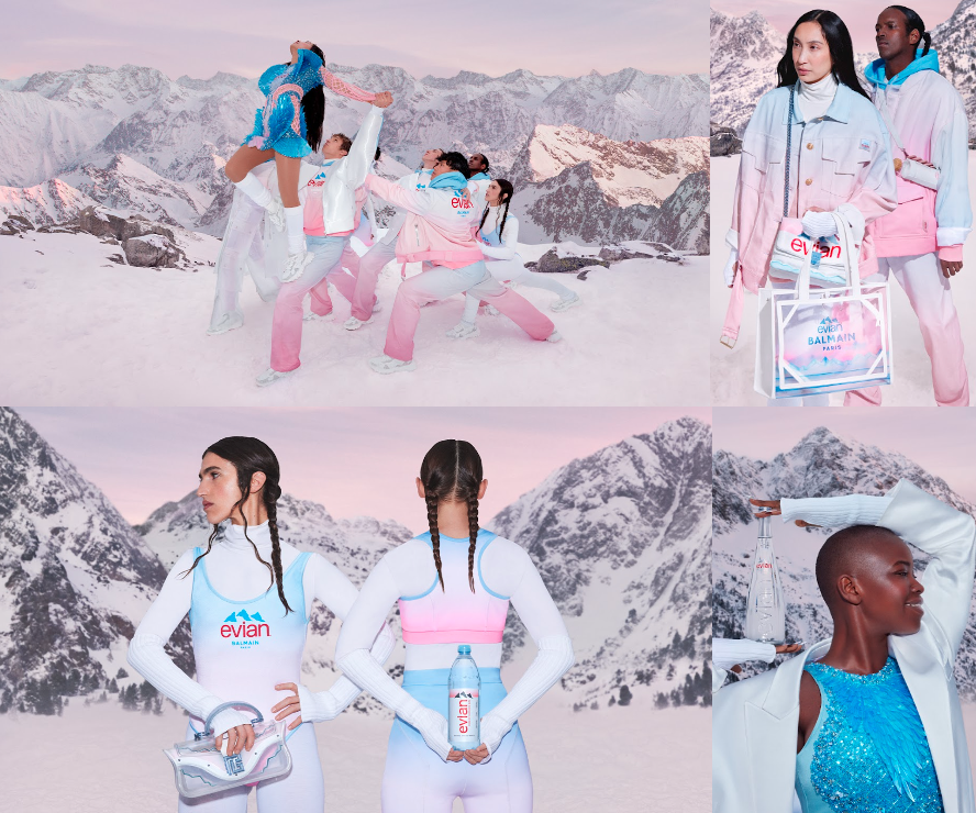The campaign ad which features models in front of a mountainous region was both relatable and intentional for both brands. “House founder Pierre Balmain was born in the small Alpine village of Saint Jean de Maurienne, not far from the impressive peaks where evian’s water first begins its famous fifteen-year underground filtering process,” said Press for Balmain.