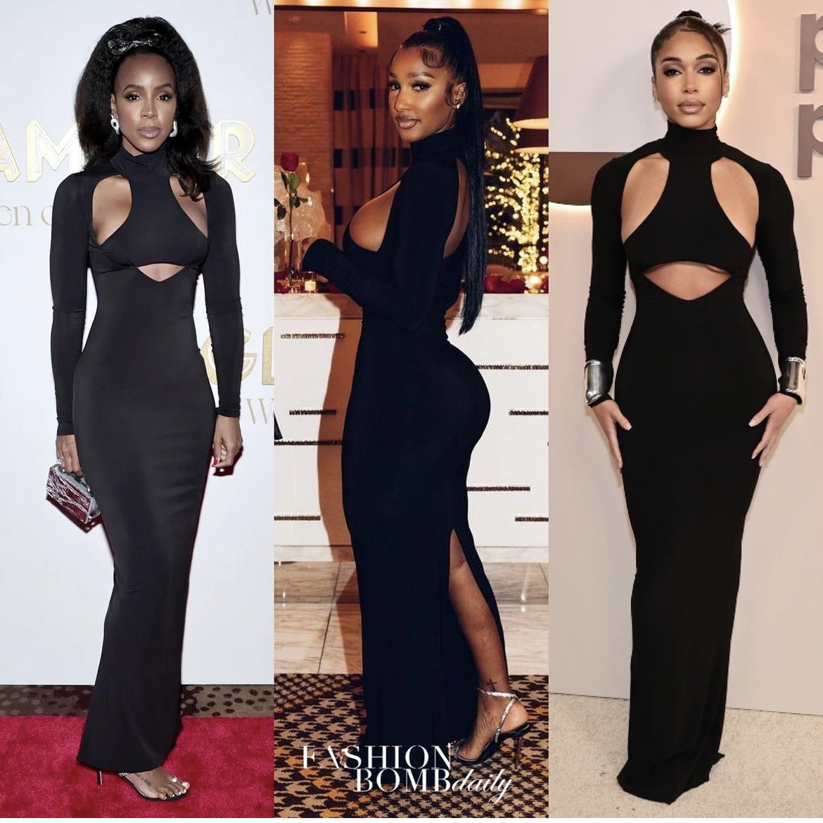 Grammy Award winning singer, Kelly Rowland was one of the first to be featured wearing the black $1095 cutout turtle-neck gown while attending Glamour’s Women of the Year Awards ceremony last November.