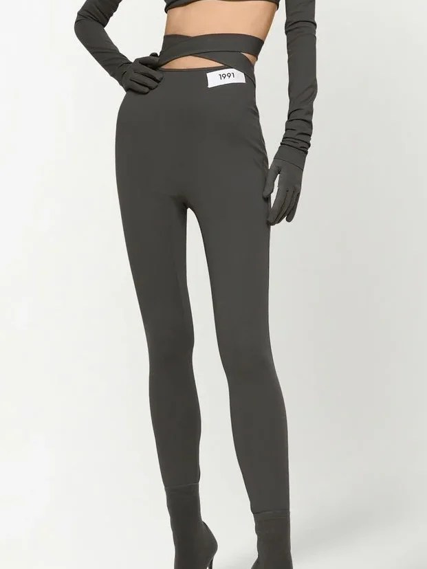 White wore the infamous Dolce & Gabbana x Kim Kardashian collab. Keeping things monochromatic and skintight, she wore gray on gray with the cross-over strap long-sleeved top, the crossover-detail leggings (which she altered), and the stretch jersey ankle boots. She accessorized with gold accessories á la croc trunk bag, hoops and a waist chain.