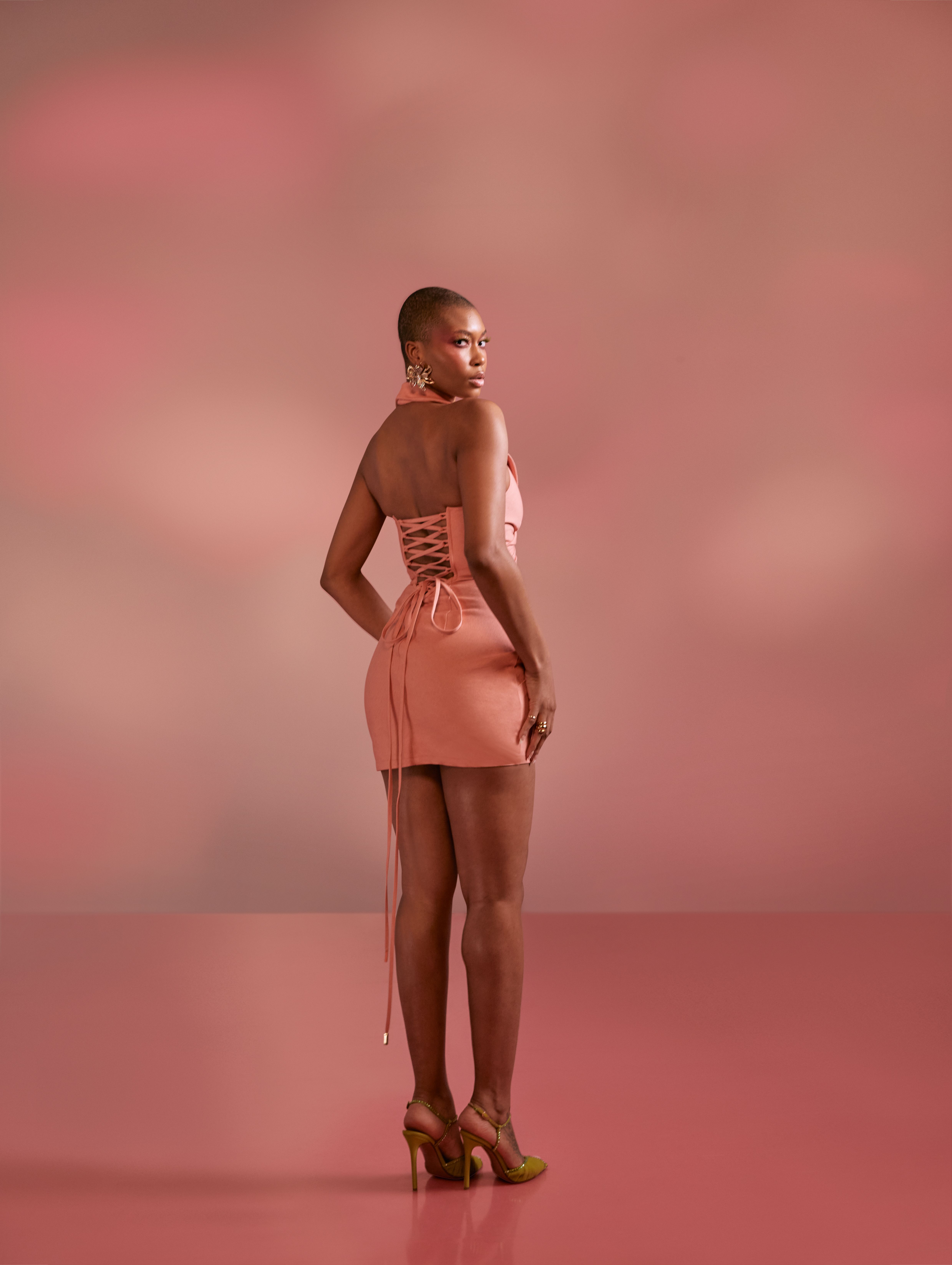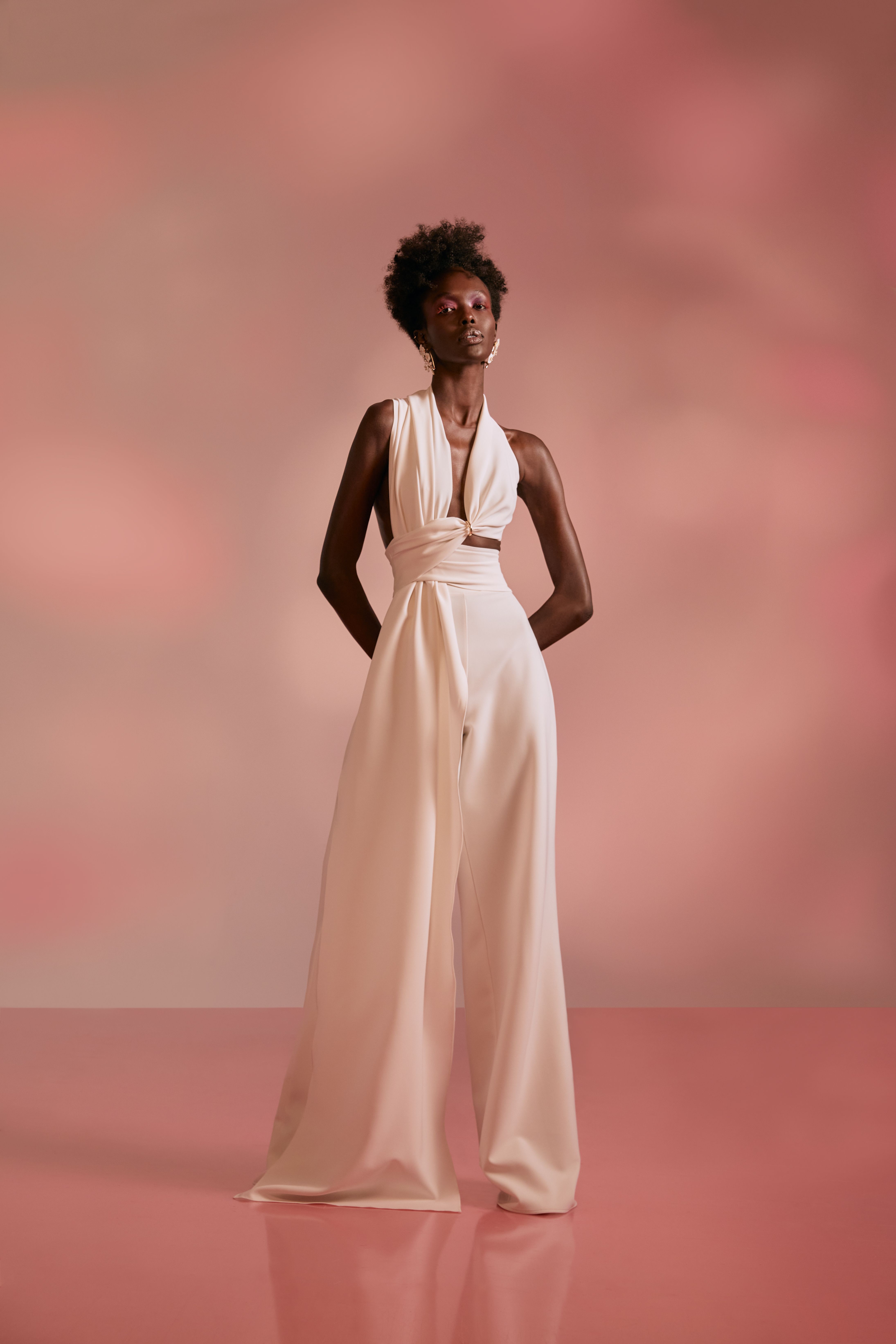 The color story of the collection is reminiscent of a fresh floral bouquet. Earth tones dance alongside hues of peony, coral, ivory, and rose, creating an undeniable freshness to the lineup. A blend of draped silks and other delicate fabrics capture femininity and sensuality, while outsized silhouettes and bold sequins evoke strength and power.