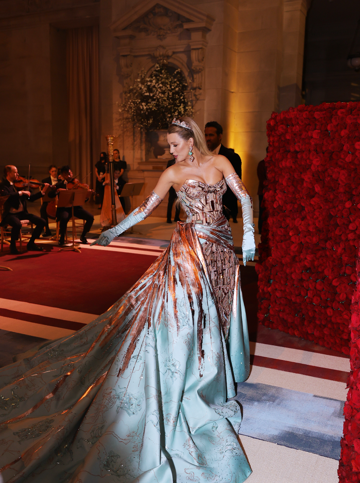 Blake Lively looked like a princess in a Versace gown, equipped with metallic accents. She is one of the few who understood the assignment.