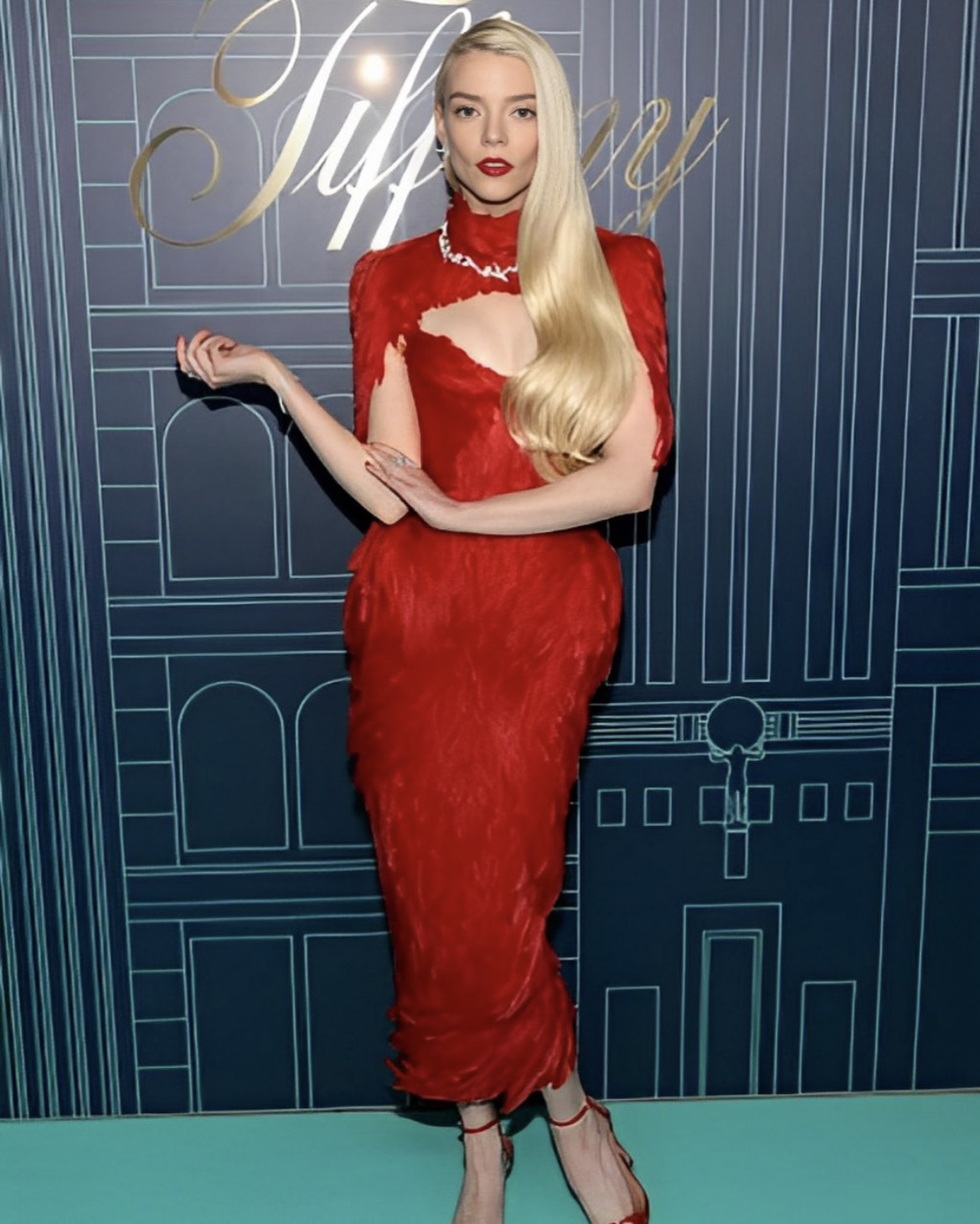 Talk about smoking haute. Anya Taylor Joy wore feathers like they’ve never been worn before. Her red feathered Dilara Findikoglu dress was quite impeccable with a delicate cutout below her neckline. This is one of the best monochromatic looks we’ve seen in a while.
