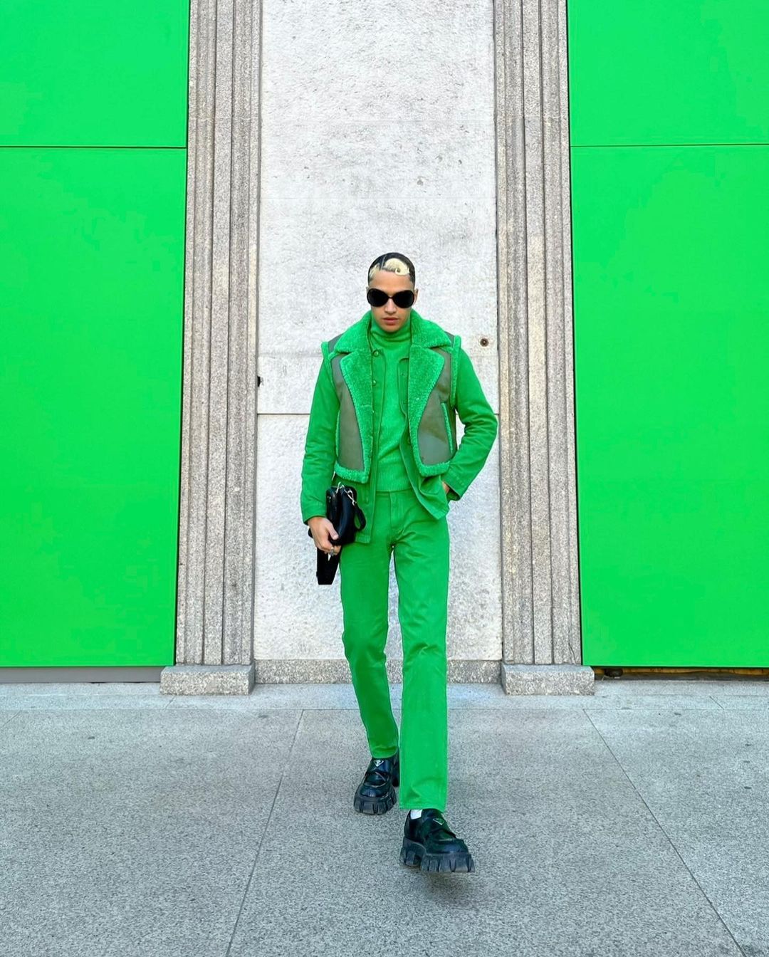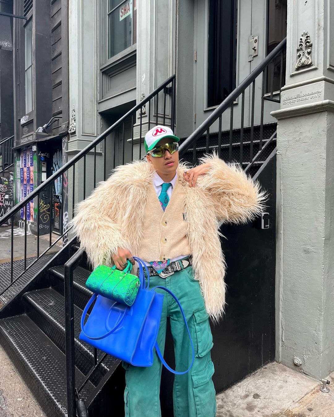 In Oliver’s world, you’re never fully dressed without a bag. Nearly all his looks include a mini bag, with Louis Vuitton, Diesel, and Telfar amongst his fav brands to rotate.