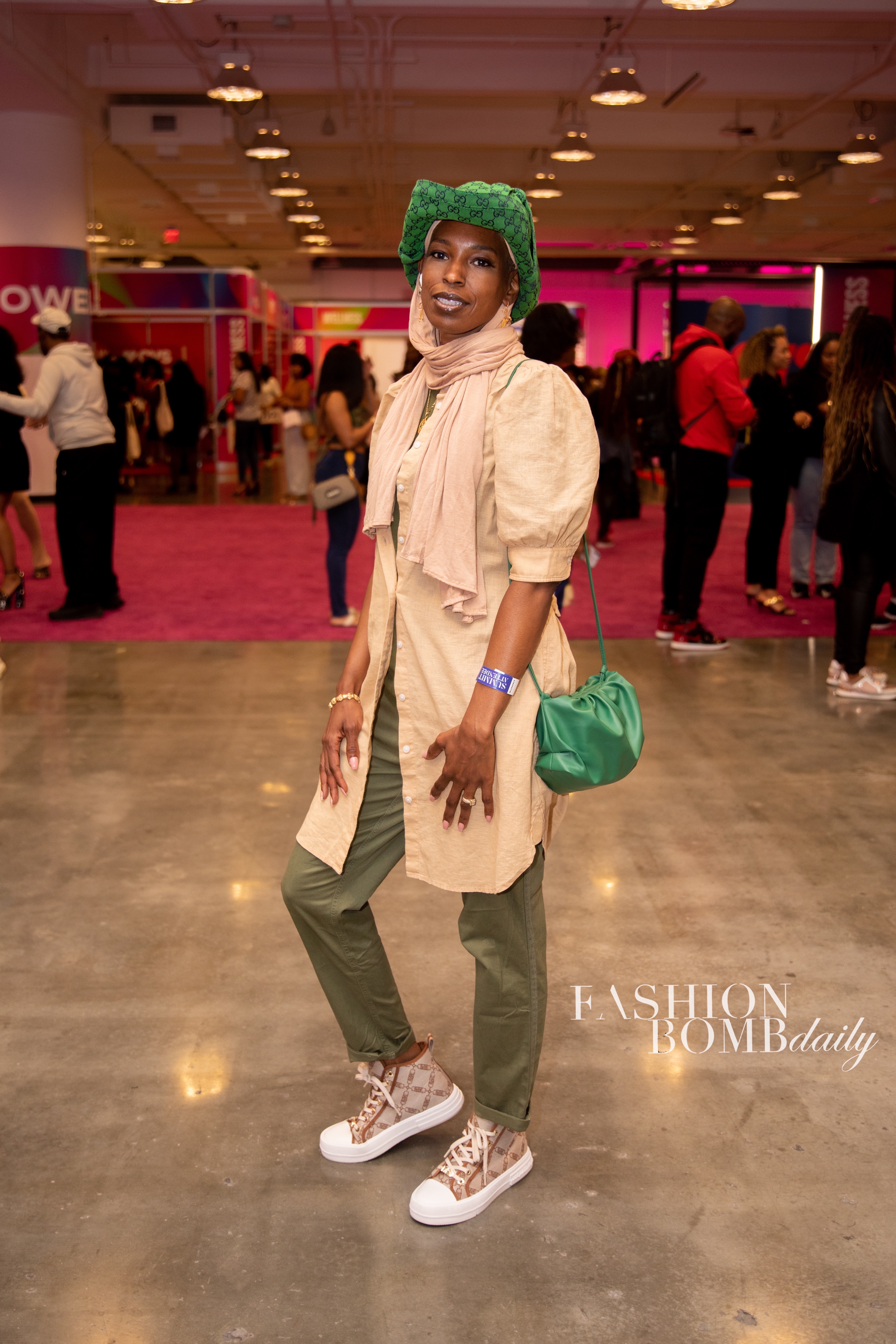 Latisha wasn’t the only one to leave others green with envy, Criminal Justice advocate, Kareemah Hanifa showed up to the Strength of a Woman fest in a nude and cargo look. Most notable was her green Gucci hat styled atop of her hijab and accessorized with a green mini bag.