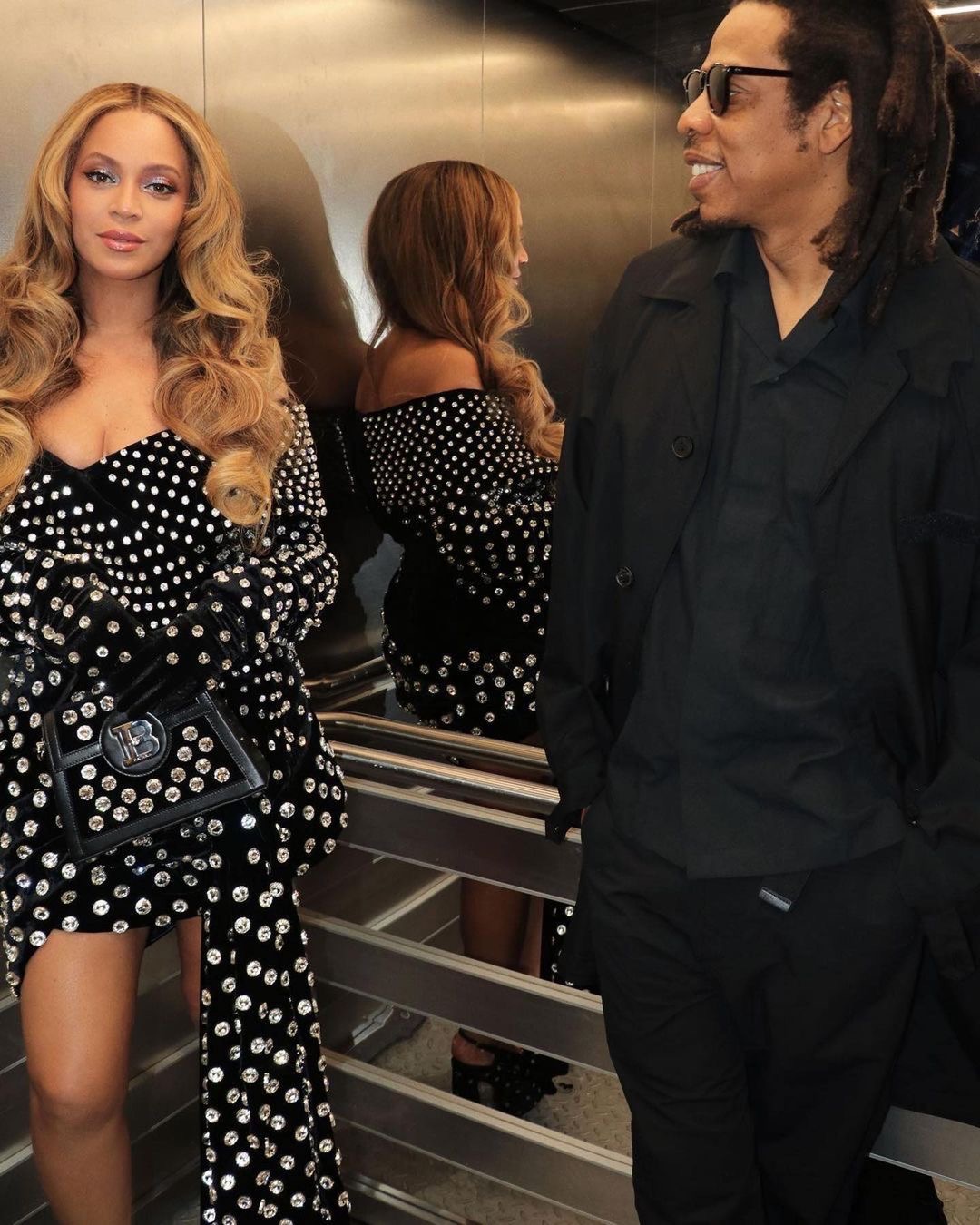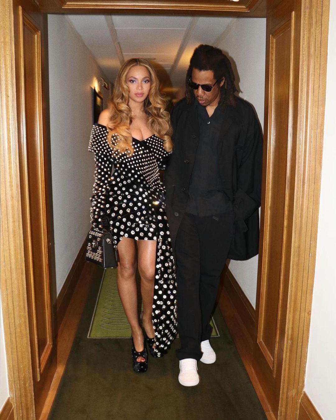Currently in the UK, the ‘Cozy’ singer looked quite cozy next to her husband Jay-Z of 15 years in a black bejeweled asymmetrical Balmain gown that hung perfectly off her shoulders and had a matching adorned mini bag. The romantic duo were on their way to go celebrate at a luxurious and private bar in the Mayfair area of London called, “Harry’s Bar.”