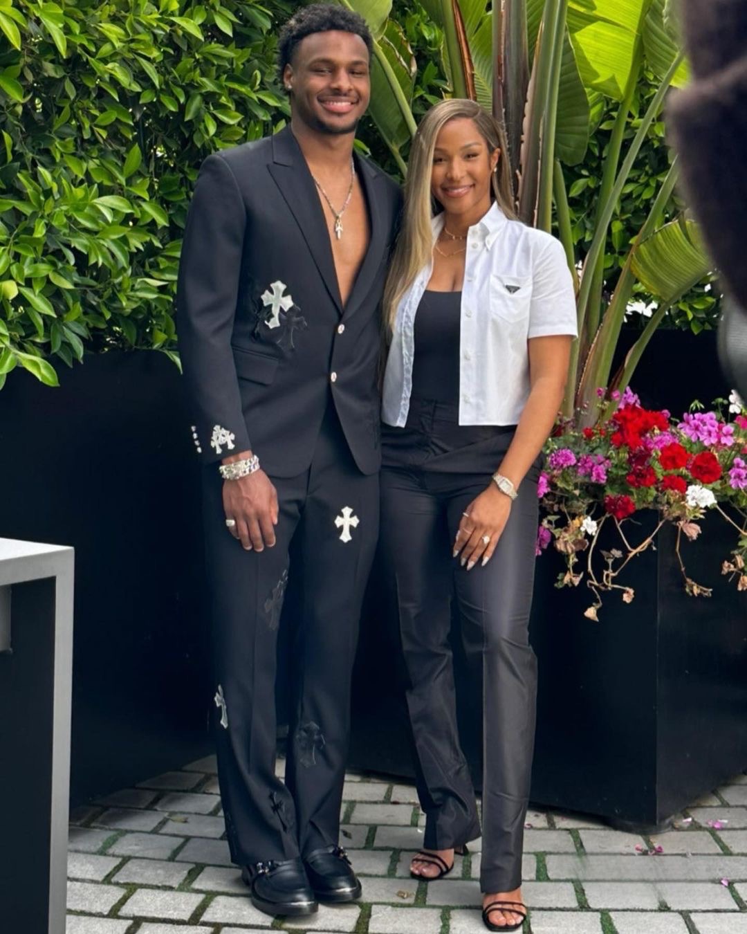 Before celebrating with his graduating class, Bronny posed for pictures with his mom, who wore a chic Prada ensemble.