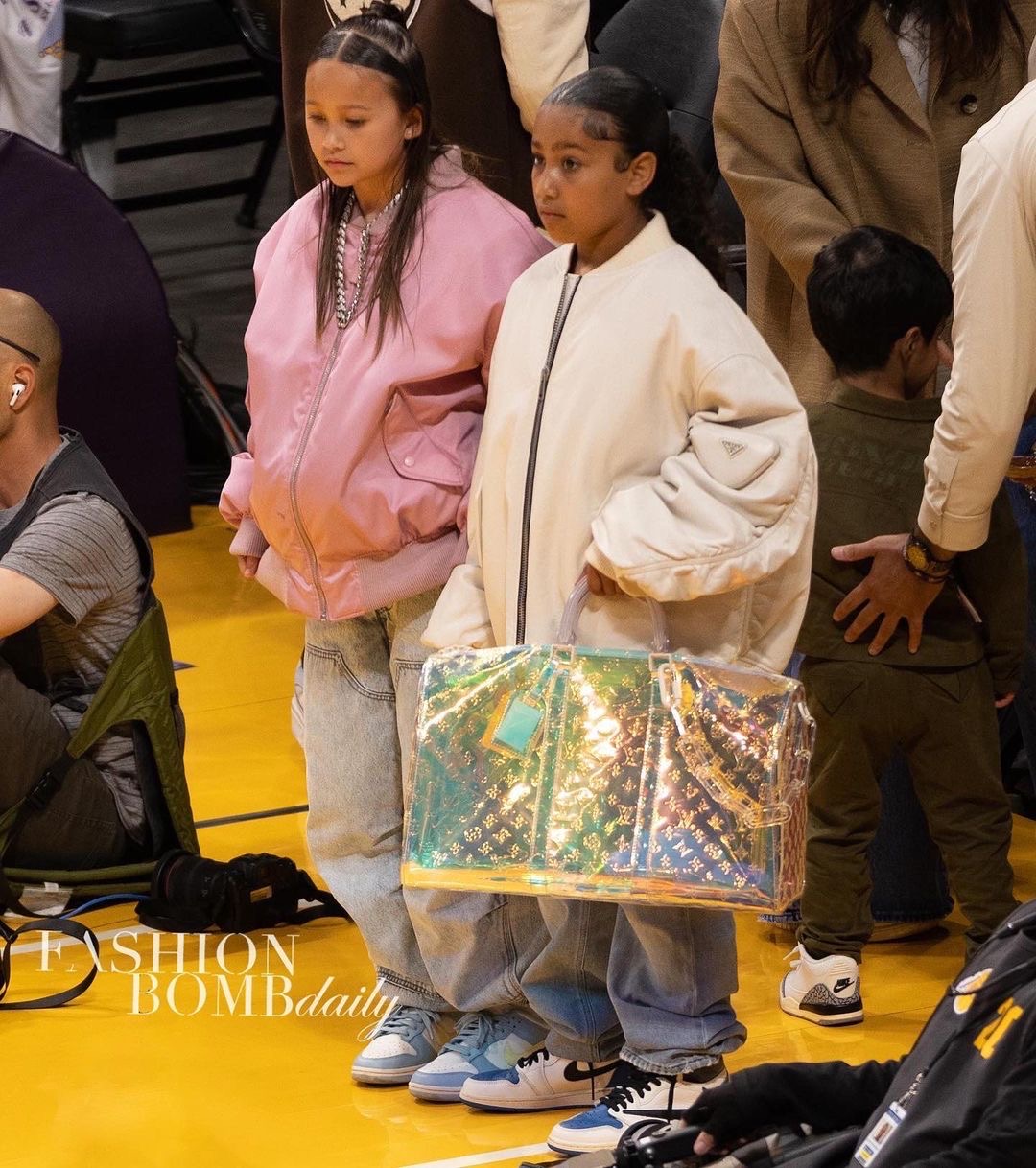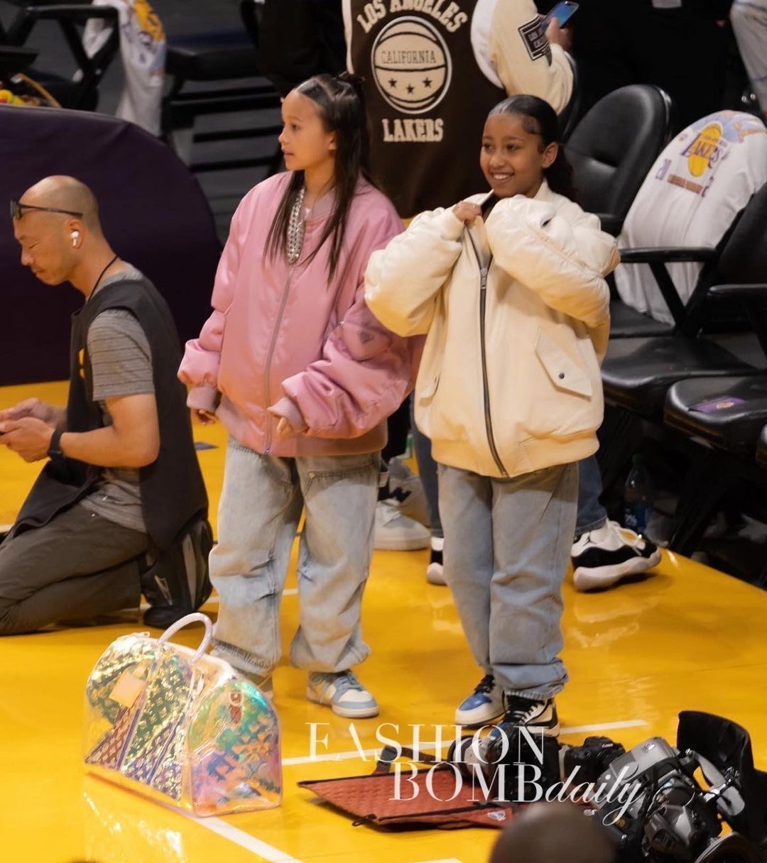 North West is fashionably ahead of her time and has definitely taken after both of her parents fashion genes. We spotted the 9-year old fashionista with her friend at the Los Angeles game against the Denver Nuggets over the weekend.