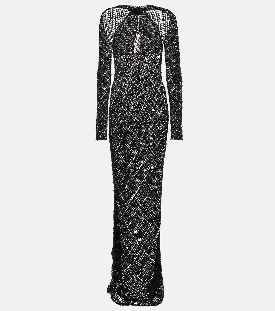 Get the look: $1,750 Coperni Sequin-embellished crochet maxi dress