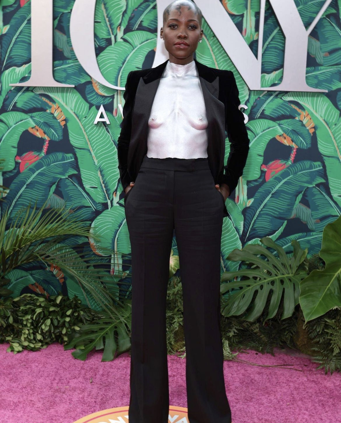 Stars of the evening pulled out the theatrics while looking flawlessly doing so. Actress Lupita Nyong’o delivered avant-garde vibes on the tropical red carpet in a silver breastplate under her black suit by Pakistani artist, Misha Japanwala. Nyong’o’s henna paint design on her bald doo by a New York artist named Sabeen looked like a beautiful tattoo from afar.
