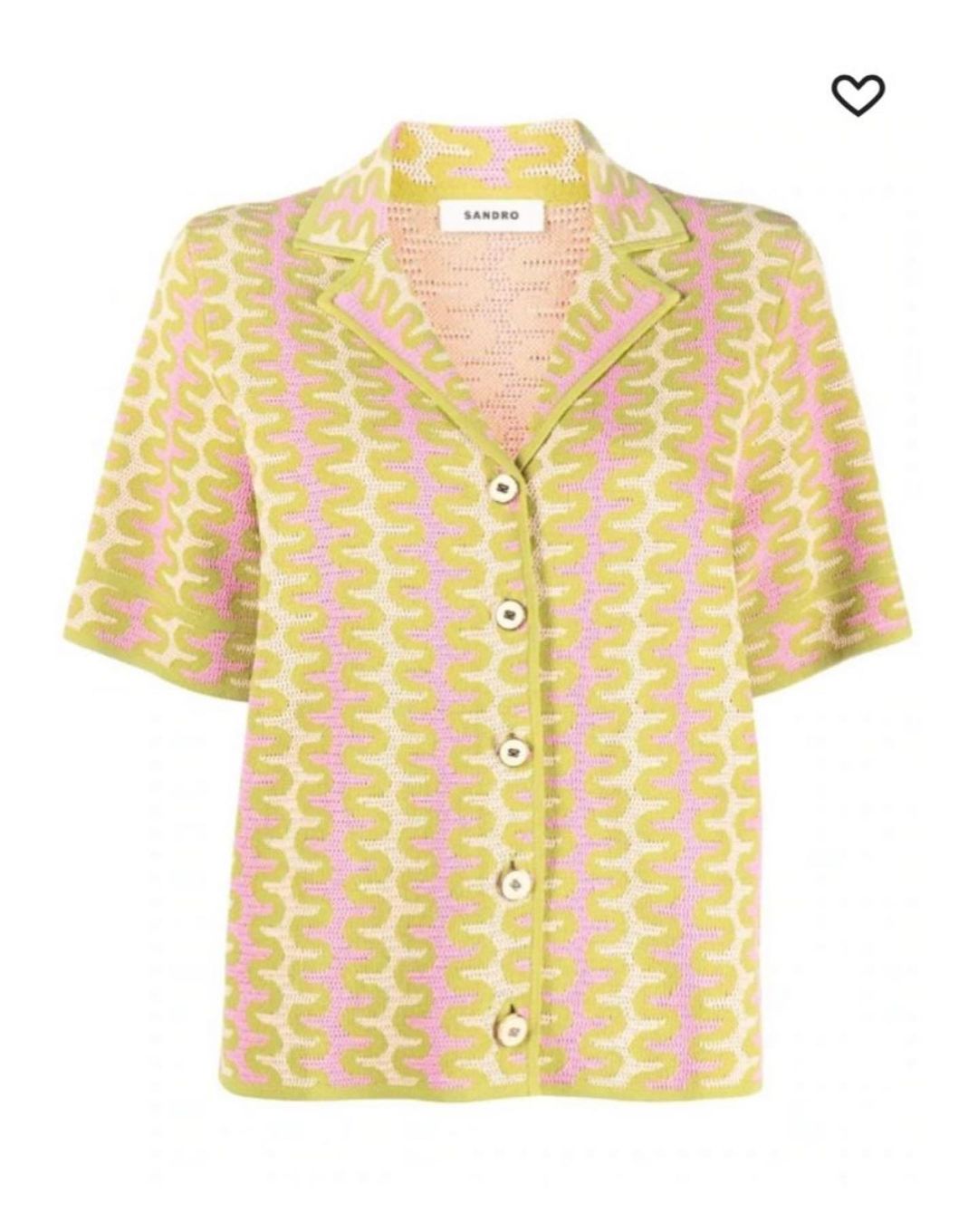 Get the look: $251 Sandro wavy crochet short-sleeve shirt