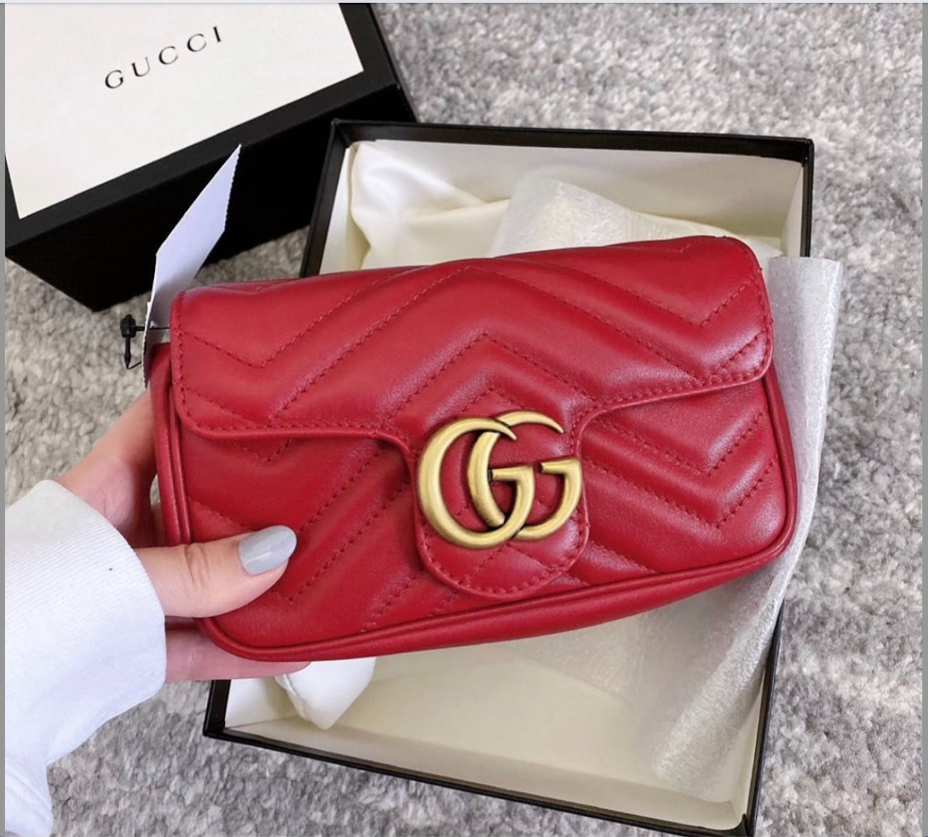Is red the new black? Gucci’s red hot Marmont Matelassé flap bag is Gucci’s newest release. Available in six different colors and two sizes- medium or mini, the GG Marmont Matelassé super mini bag was designed with versatility in mind.