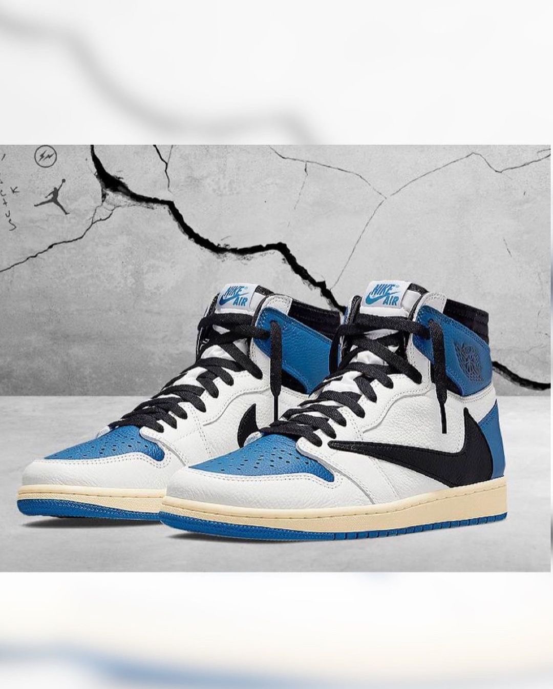 Kim looked very downtown chic with her blue, white and black Travis Scott Air Jordan 1 High SP “Fragment” sneakers that retail for $1,995. We love the iconic silhouette and oversized backwards-facing Swoosh on the lateral side which offered a modern twist to the traditional Air Jordans we all love.
