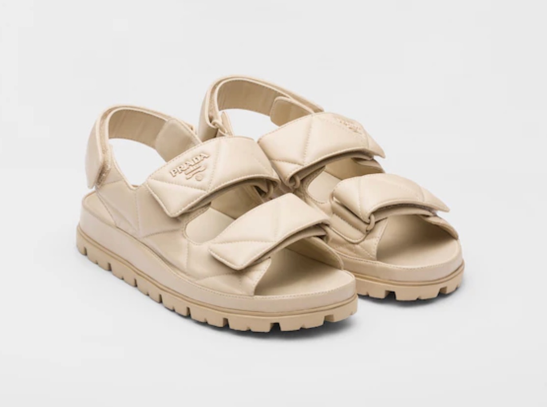 Attributed with padded leather material for comfort, and characterized with their signature Prada logo, Prada created these sandals to stand out.