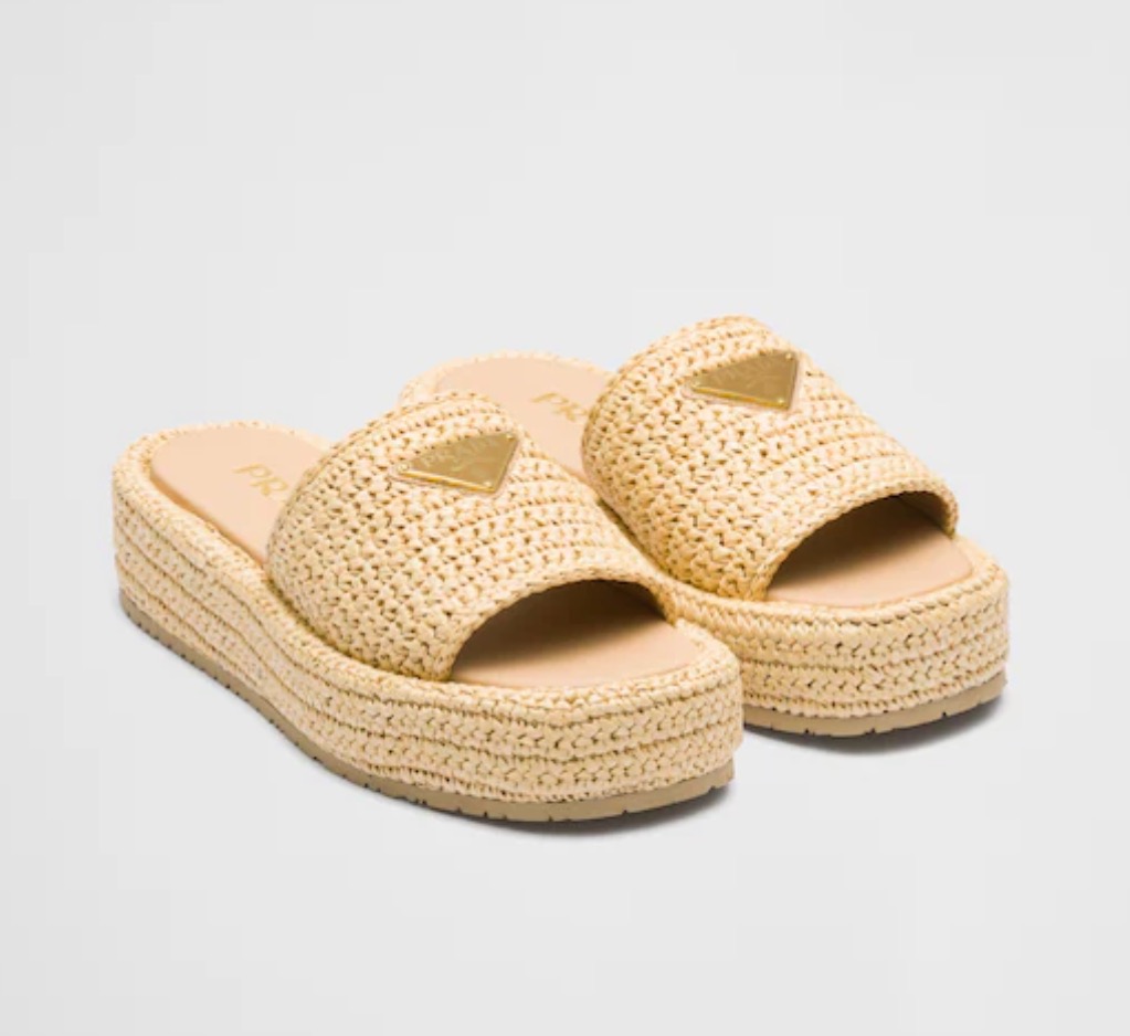 Priced at $1,150, Prada’s Crochet flatform slides are a vacation must-have. Available in black, natural, and orange with the Prada signature logo placed across the top of the sandal, these sandals are the epitome of chic.
