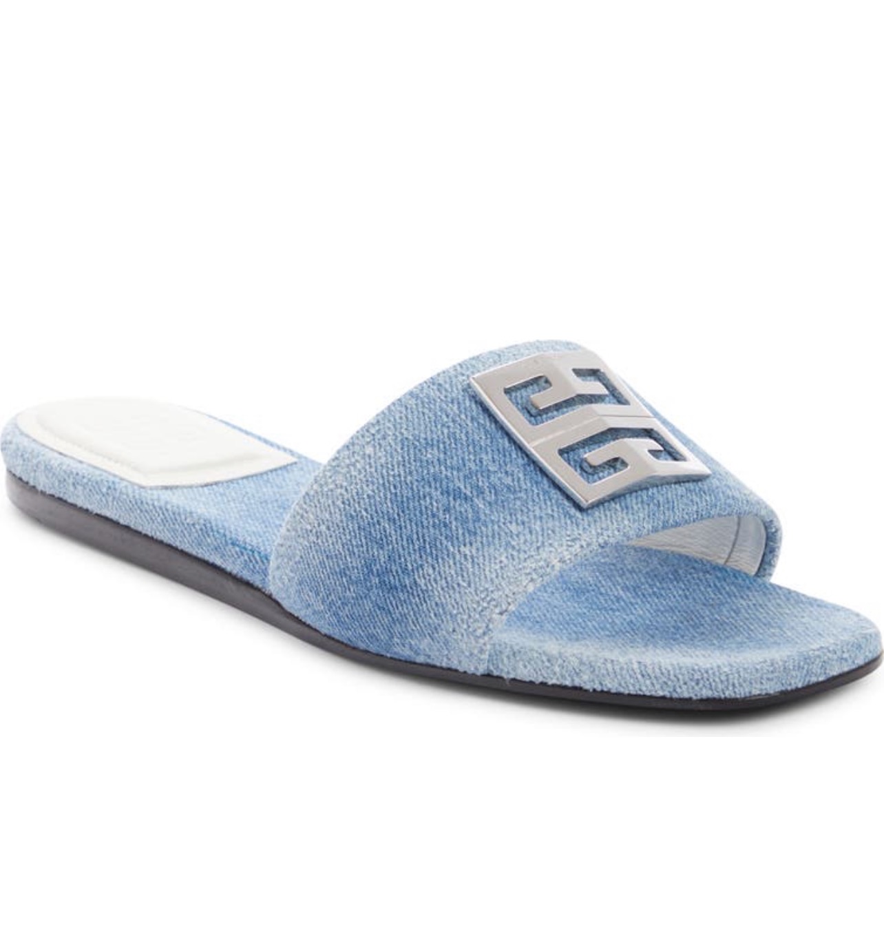 Priced at $750, you can pair the mini bag with the Givenchy ‘4G Slide Sandal’ in light blue. Topped with their signature Givenchy logo, these sandals also come in the color black.