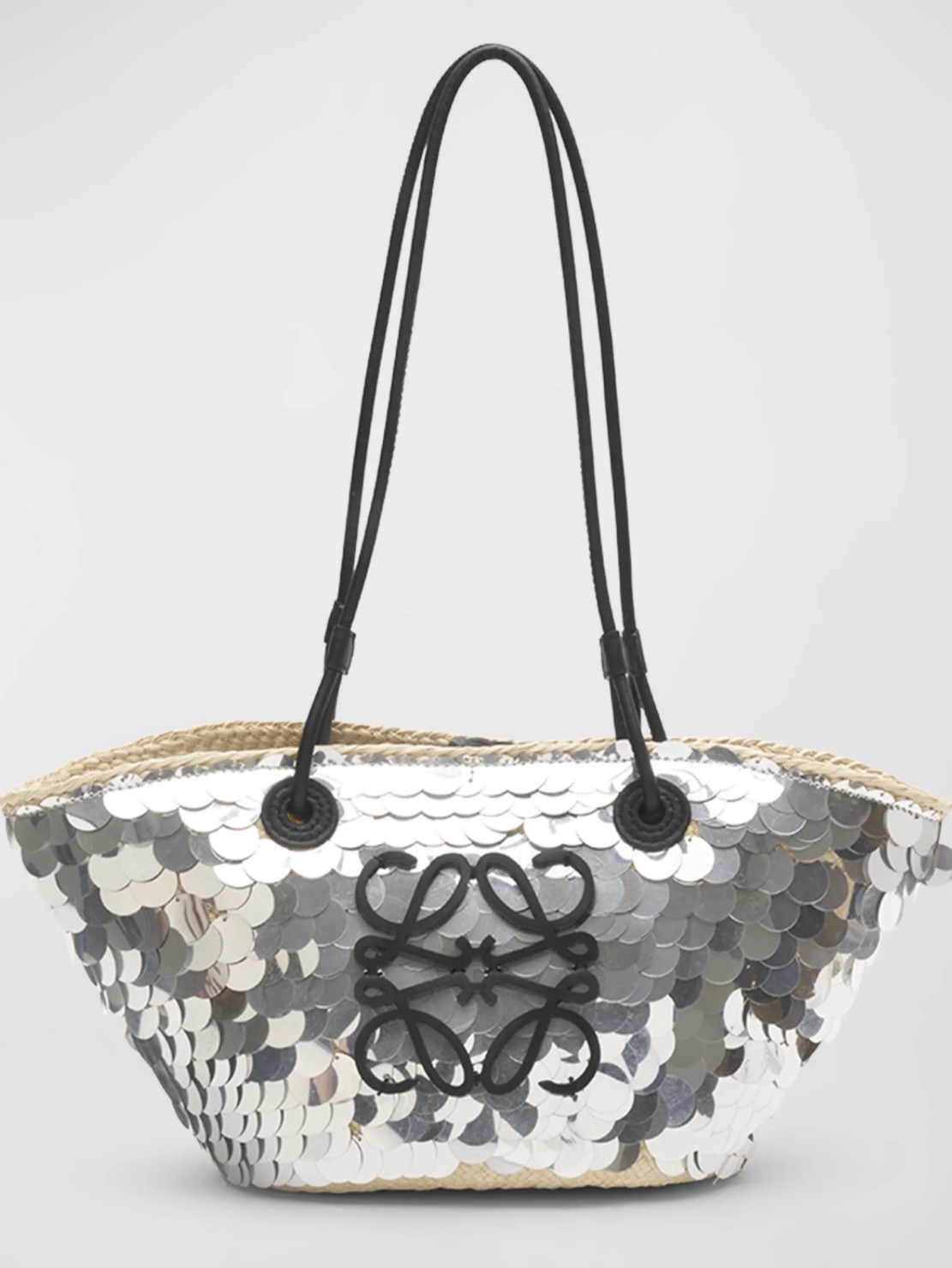 Bucket bags are the new beach bags according to Loewe and their newest sequin bucket bag release. At a splurge of $990, you can pair ‘Loewe x Paula’s Ibiza Anagram Small Sequins Basket Shoulder Bag’ with any beach fit.