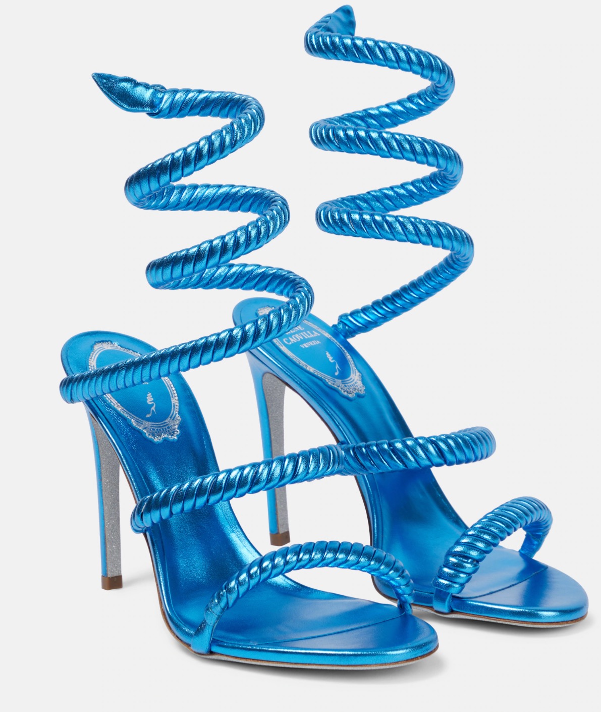 Looking to wear designer but on a budget? No problem! Of course, everyone wants to get their hands on Rene Caovilla’s latest ‘Cleo 105 Metallic Leather Sandals,’ priced at $750.00. Made in Italy, the blue Cleo sandals from Rene Caovilla feature slender straps that wrap around the ankle and are tipped with snakeheads.