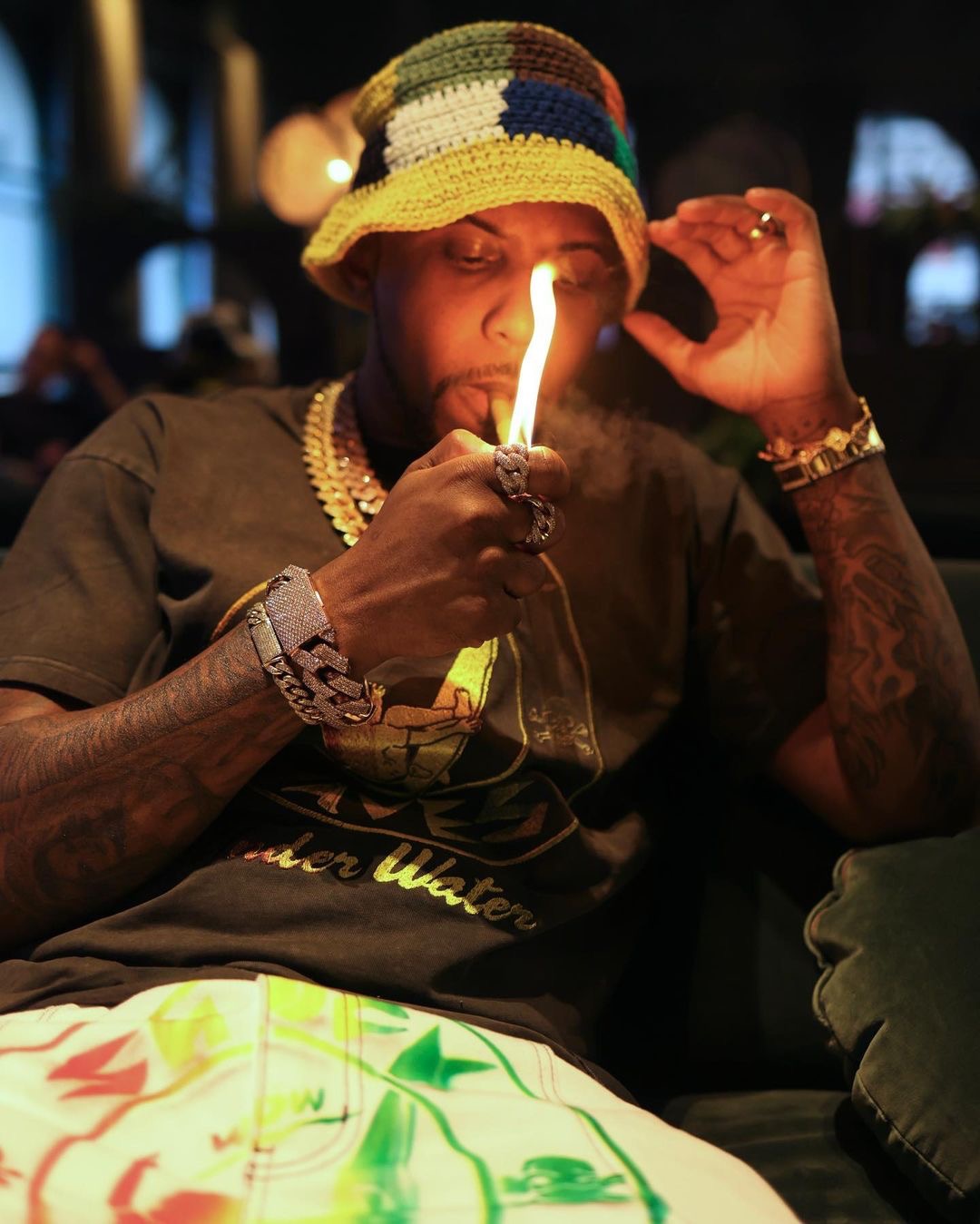 Style-friendly emcee Fabolous has proven he’s a fan of the brand, wearing several pieces, from outerwear to graphic trousers. Recently, he visited NYC’s The House of Cannabis in Who Decides War’s $1,200 Bridgetown Mrdr Moto denim.
