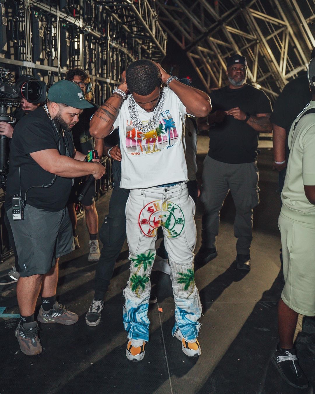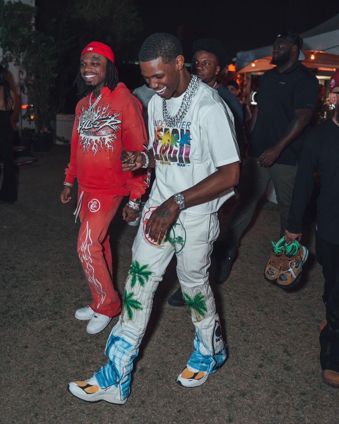 During Coachella weekend, the New York rapper wore the Bridgetown Mrdr Moto denim with Who Decide War’s beach jersey cropped tee, which showed off just a touch of his CK boxers. Like Fabolous, A Boogie wore yellow shoes and rocked New Balance’s M2002RGW style.