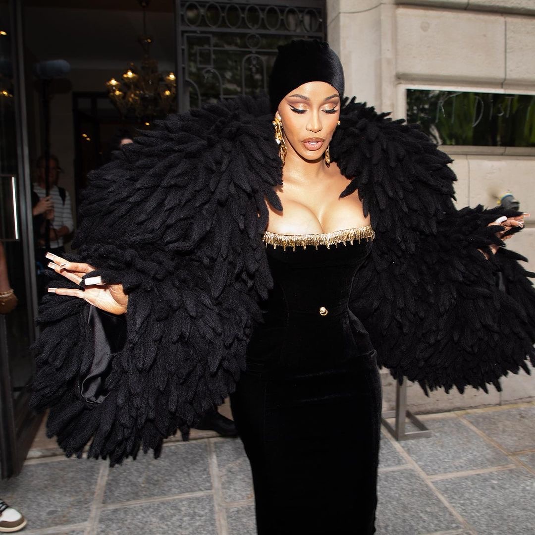 Noticeably absent from the Paris Haute Couture Schiaparelli show was Cardi’s hubby, Offset who she recently got into a quarrel with due to cheating allegations.