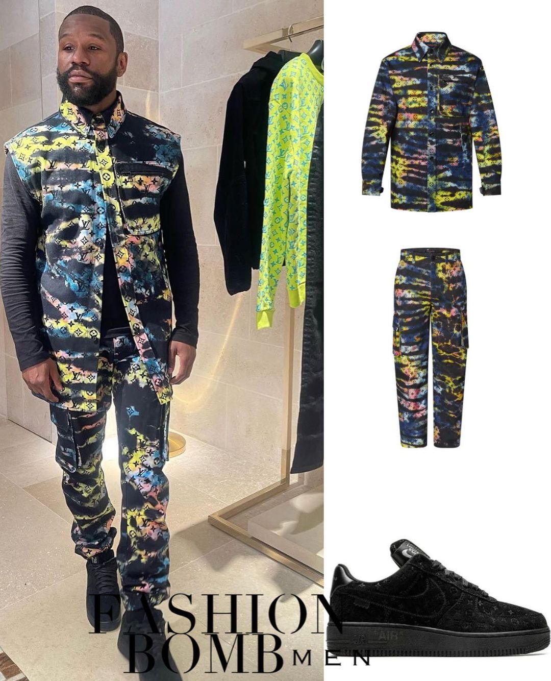 Known for his penchant for luxury brands, Mayweather’s choice to visit the iconic Louis Vuitton boutique was no surprise. The legendary boxer copped a vibrant tie-dye ensemble that perfectly blended his larger-than-life personality with contemporary fashion trends.