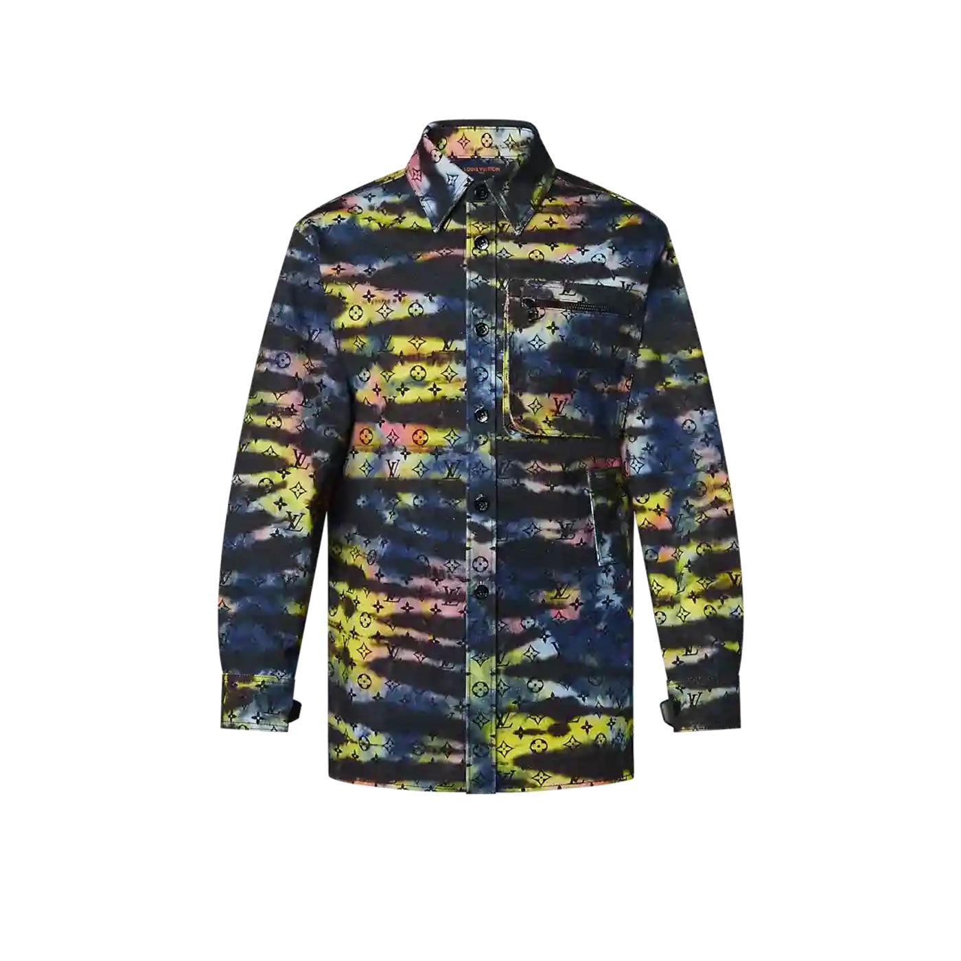Get the look: Louis Vuitton Printed Monogram Tie-Dye Denim Shirt