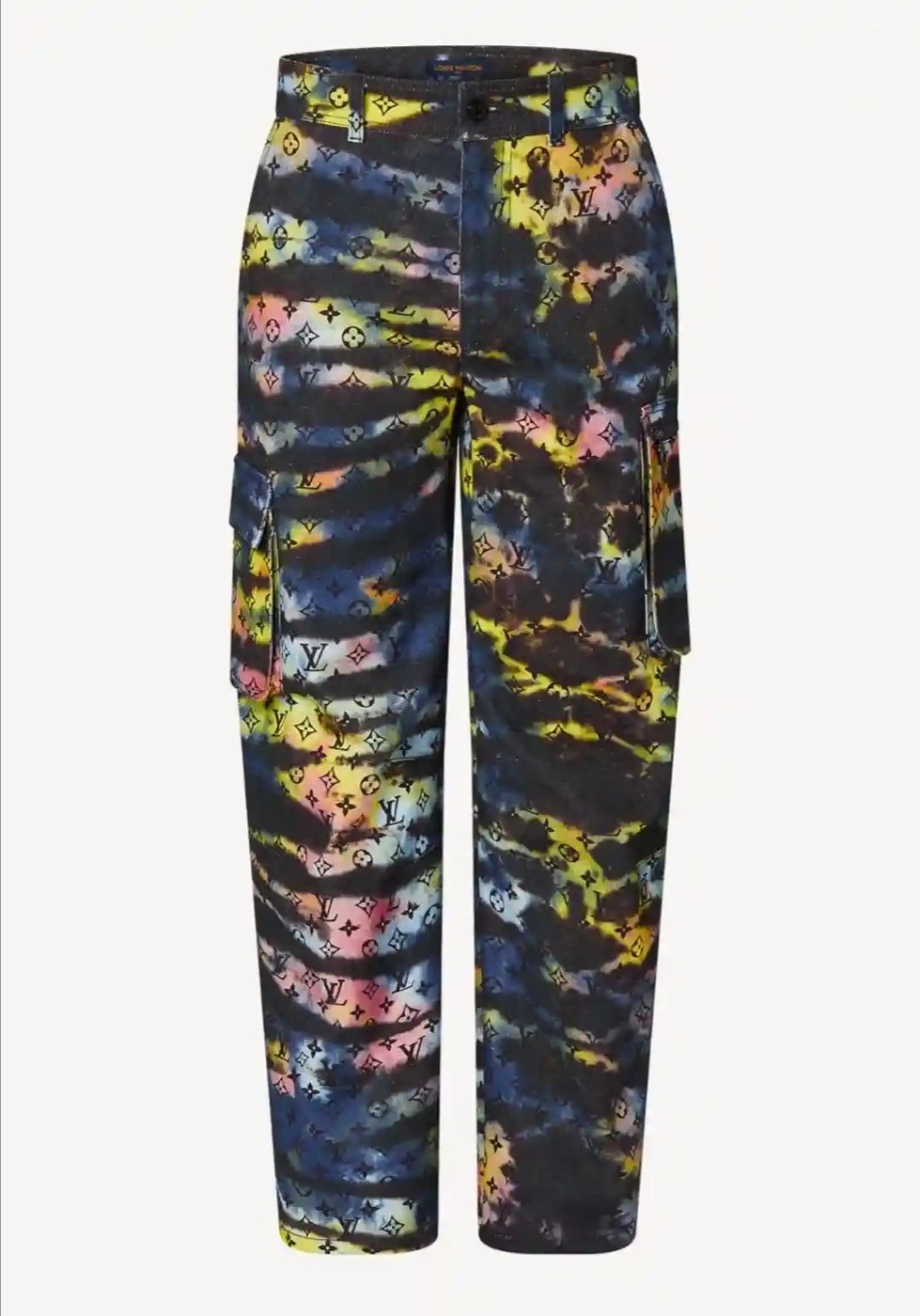 Get the look: LV Printed Monogram Tie-Dye Cargo Denim Pant