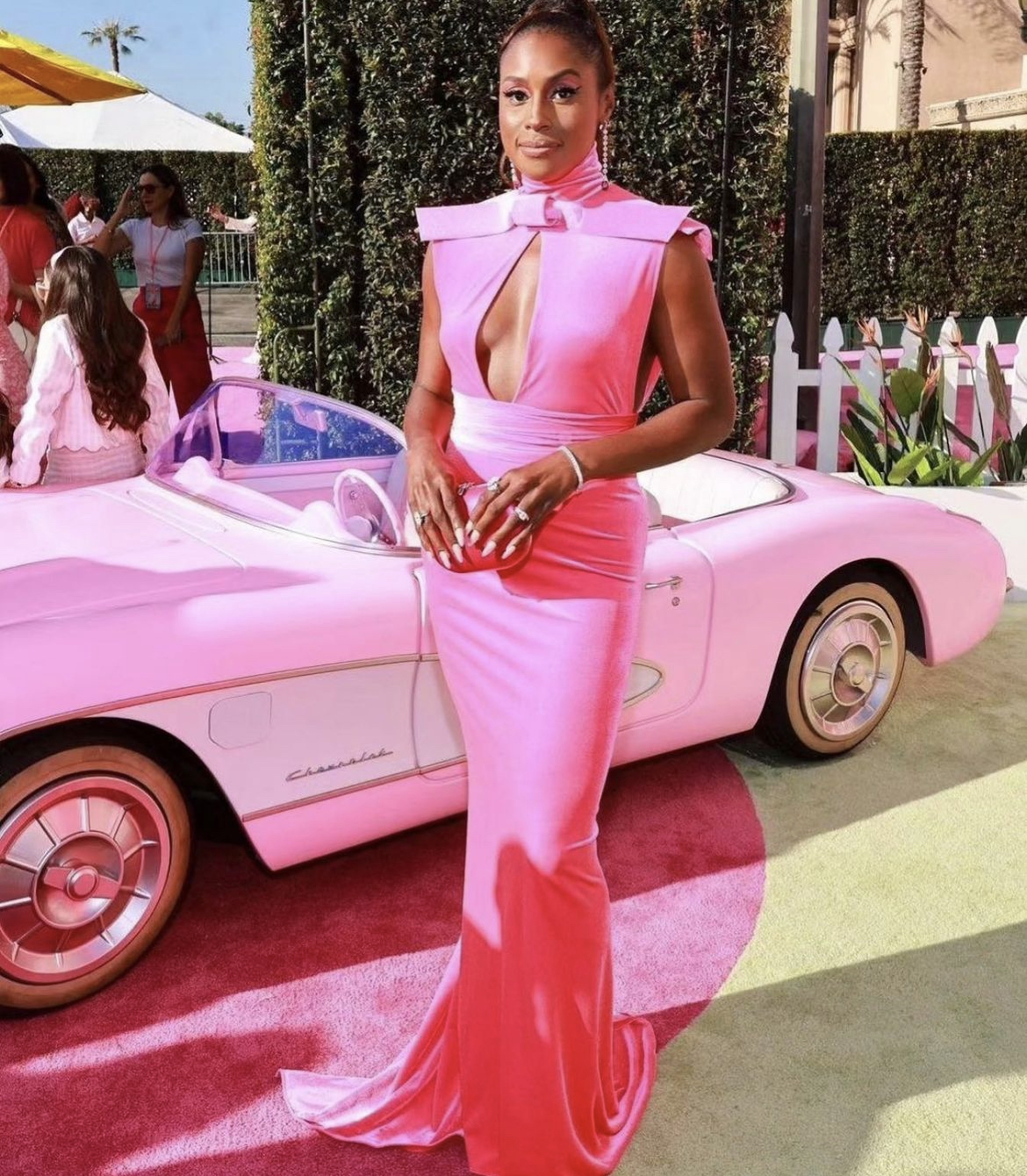 Actress and Producer Issa Rae, who plays ‘President Barbie’ in the upcoming Barbie movie looked exceptional and incredible in a hot pink Marc Bouwer dress that had a high neckline and was characterized with a bow and cut-out front and center.