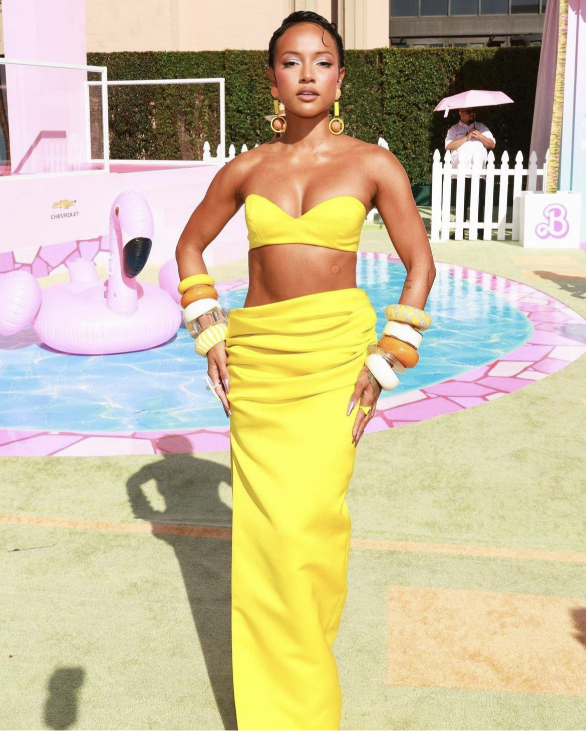 Another show-stopper to attend the premiere was Actress Karrueche Tran who looked absolutely stunning and eye-catching in a vibrant yellow Christian Siriano bandeau top and skirt combo that felt juicy, youthful and fresh.