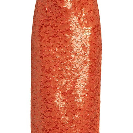 This high-waisted midi-skirt offers a floral-lace construction and complementary sequin embroidery.