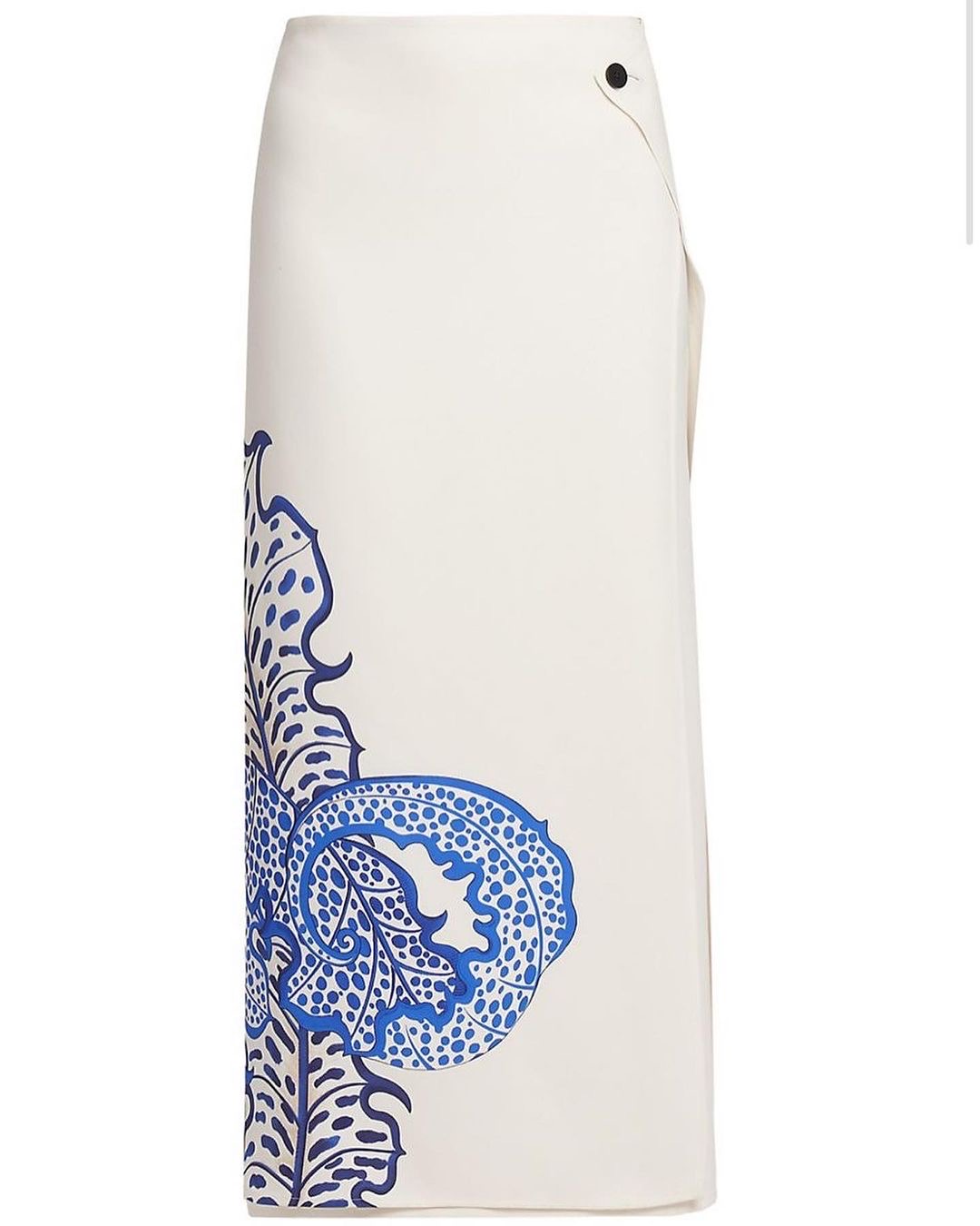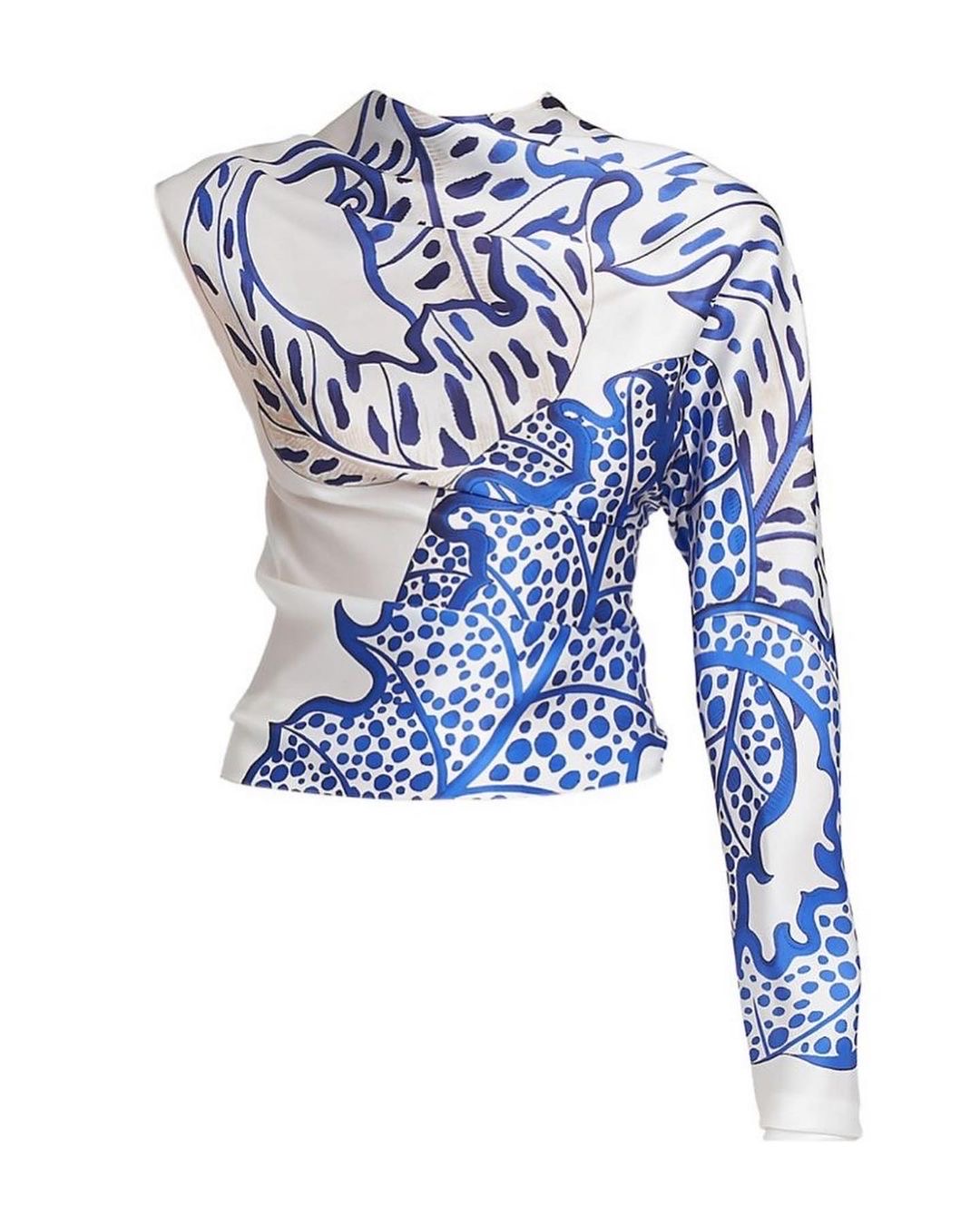 The ‘SKN’ founder, 26, stunned in a white and cobalt blue $1,250 Asymmetrical satin top that was bold, and intricate and had elegant Foliage print down the center and long sleeve part of her top.