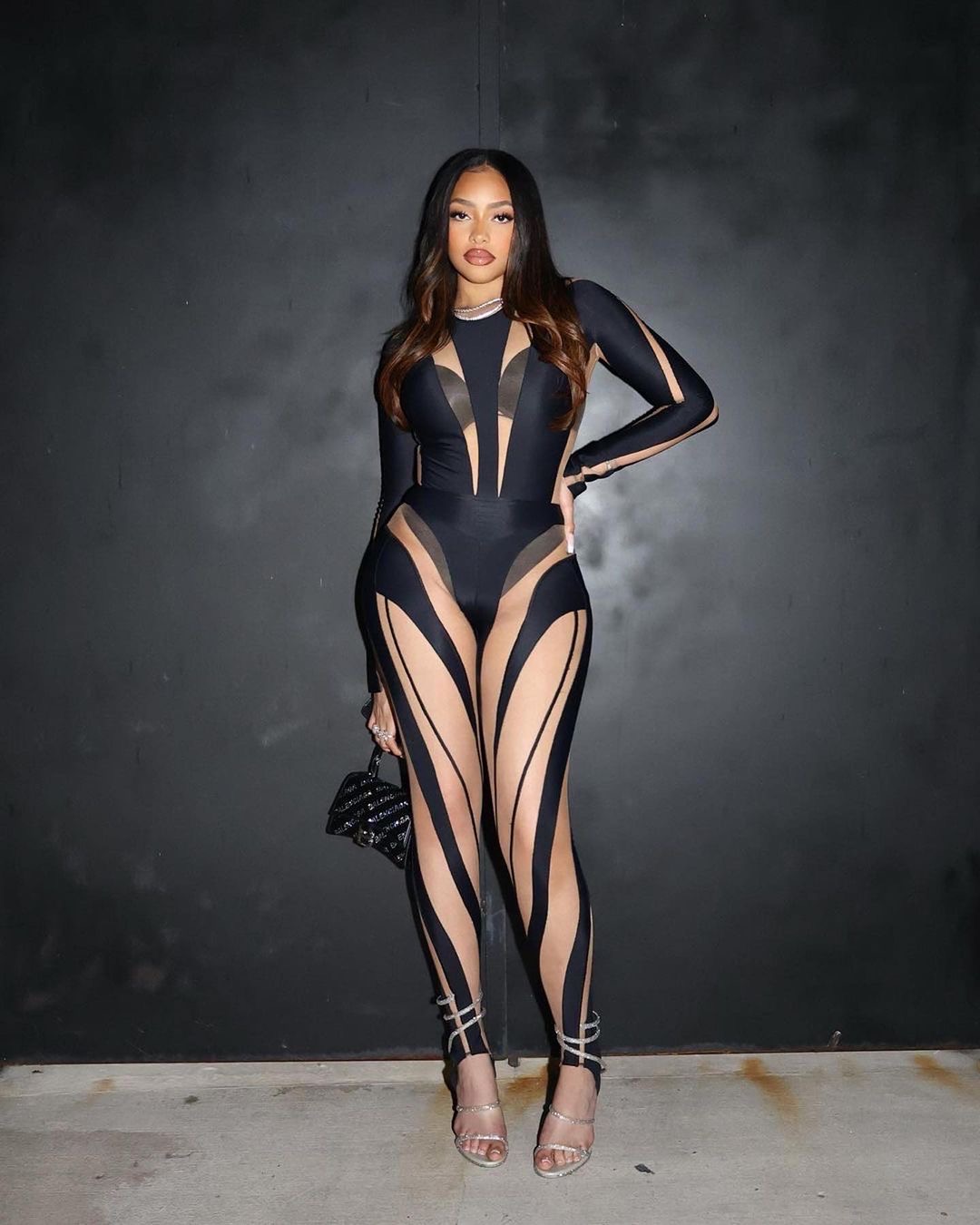 Sisters Jordyn and Jodie Woods both served bawdy in bodycon ensembles while Rihanna and baby RZA looked on trend in their denim-on-denim outfits at Giorgio Baldi’s.
