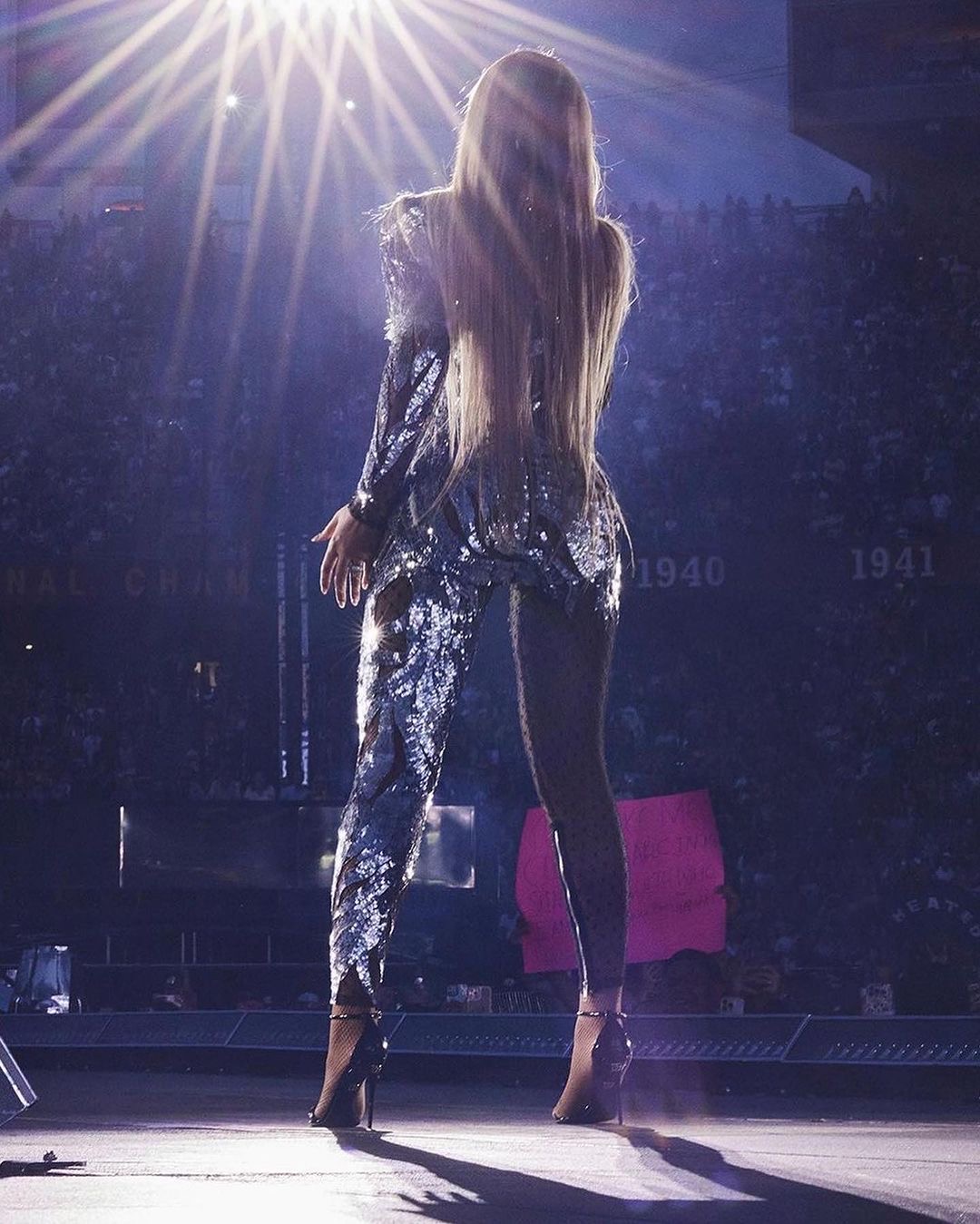 One look in particular that shut down the stage in Minneapolis, and offered a different spin was a black Alexander McQueen mesh catsuit that had silver sequins and beads intricately embroidered into a horse motif. Her look was definitely giving, “Beyoncé Thee Stallion.”