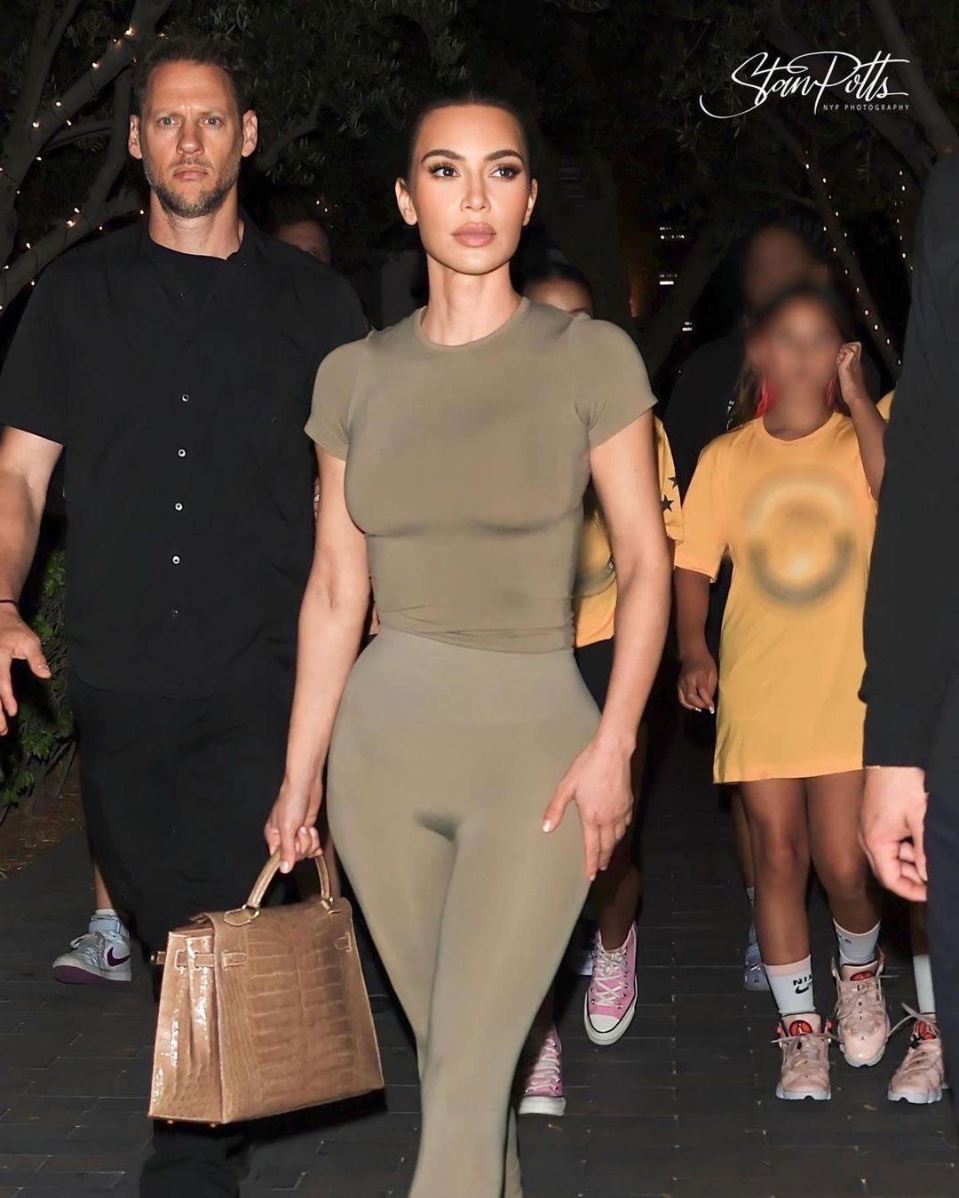 Accessorizing with the ultimate ‘It-Girl” bag, a tan beige $2,400 Hermes Crocodile Kelly bag , Kim looked all smiles on her way to cheer on her daughter North at her basketball game.