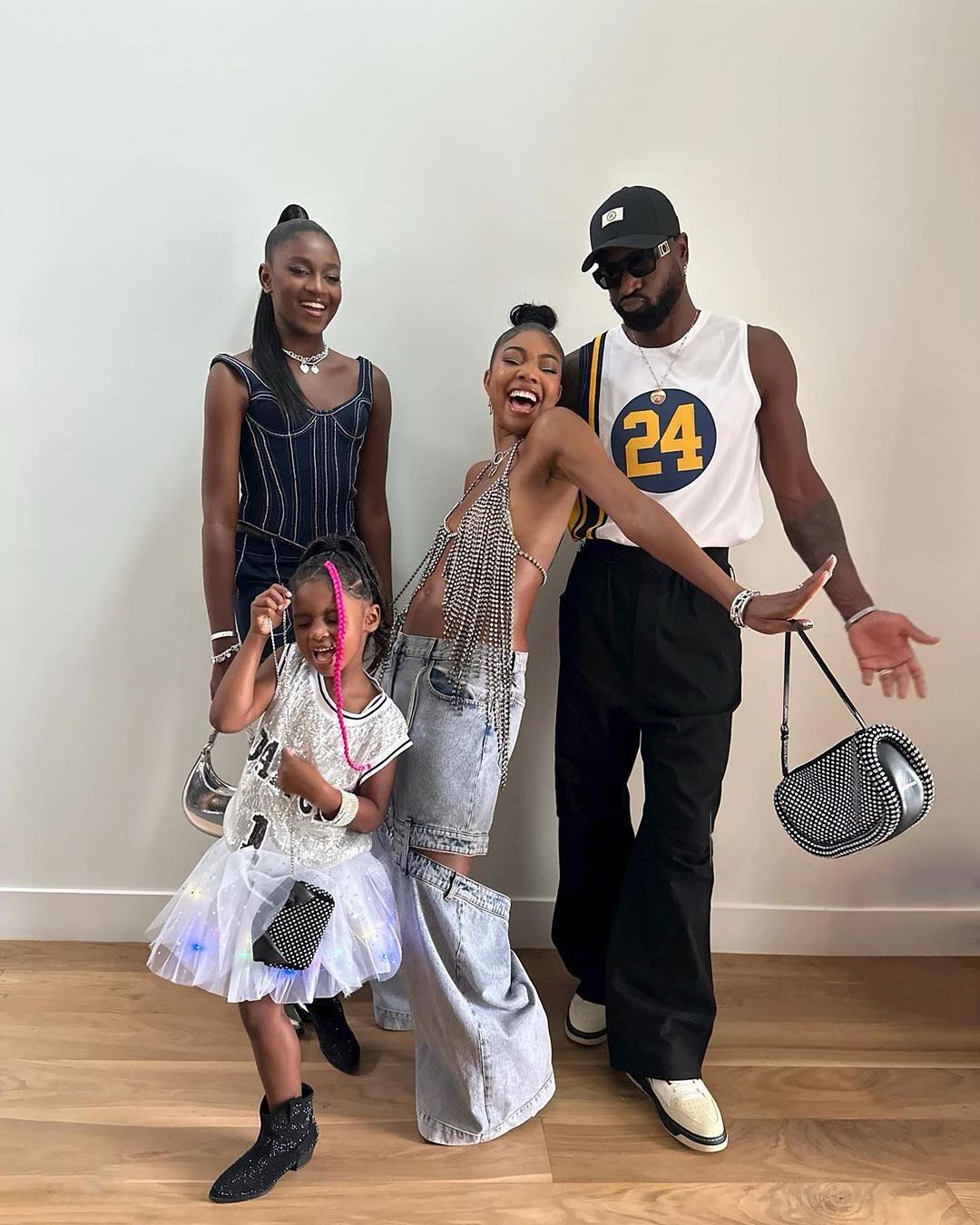 Gabrielle Union in Stella McCartney, The Attico and J.W Anderson with Zaya Wade in New Arrivals, Kaavia James and Dwyane Wade