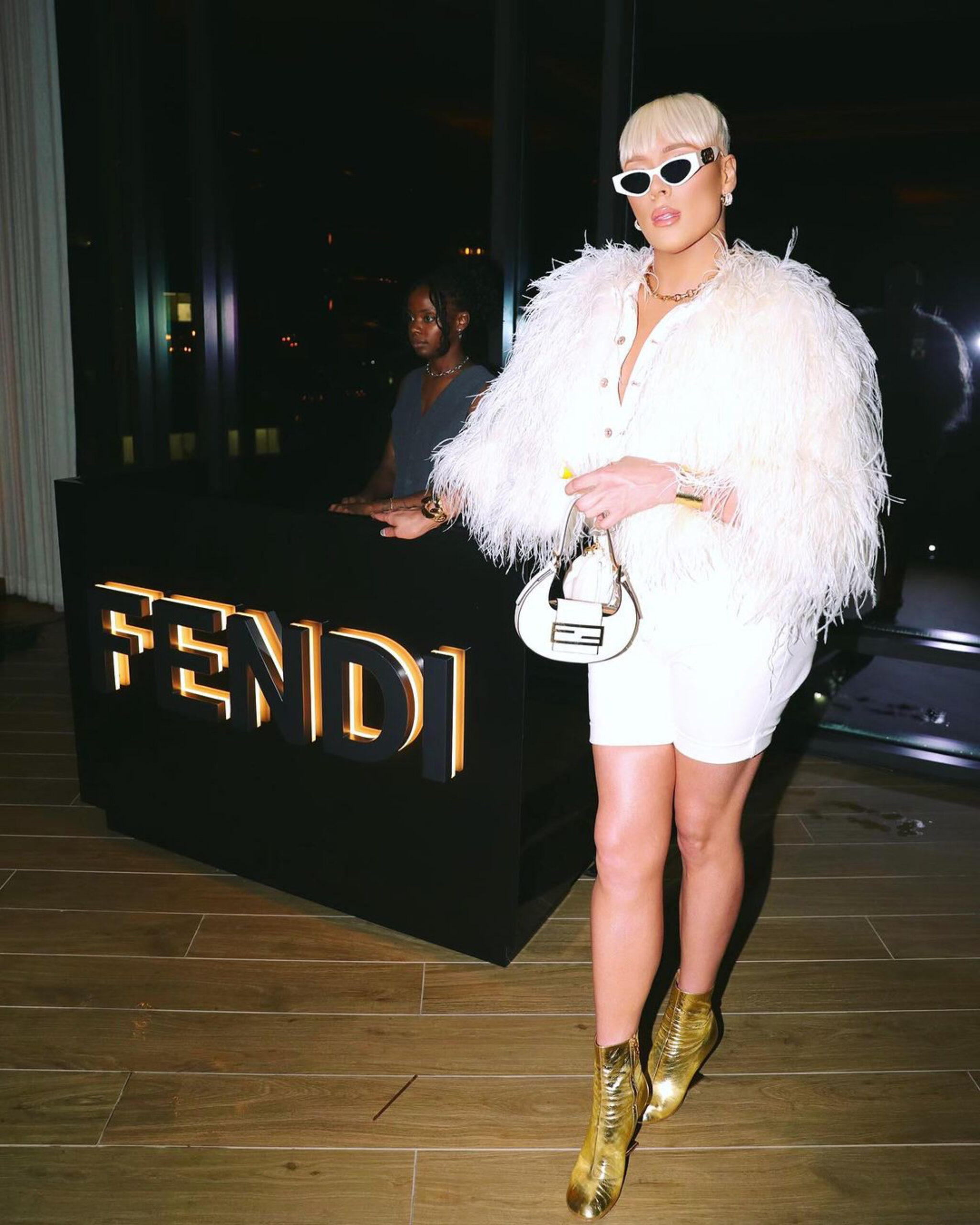 Known for being one of the most stylish influencers in the Atlanta area, with a following of 1.6 million followers, and videos that go viral by the dozen, Alonzo Arnold slayed the scene per usual in a chocolate brown mini dress that they paired with slouchy boots and a FENDI logo mini bag. Arnold’s blonde bob cut was to die for, with make-up perfectly applied.