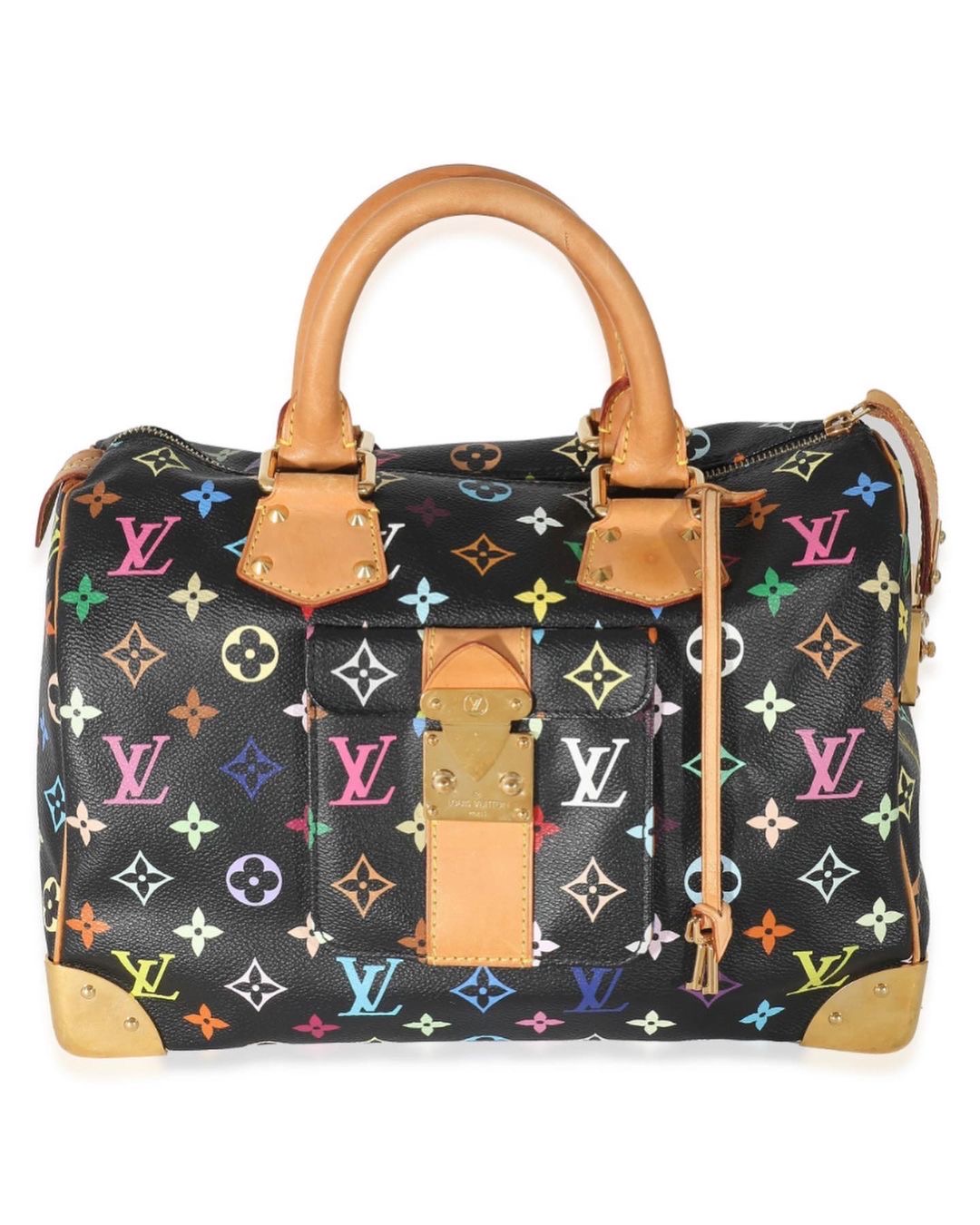 In addition, Minaj accessorized with a multicolored Louis Vuitton Takashi Murakami collection handbag that had LV’s signature monogram print, and was characterized with gold hardware.