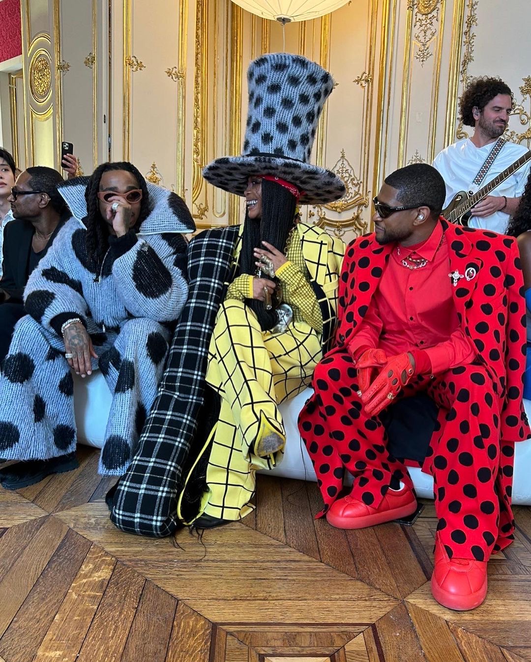 Also sitting front row, this time at Paris Fashion Week next to Erykah Badu and rapper Quavo, was singer Usher who announced over the weekend that he will be performing during the 2024 Super Bowl Half time performance.