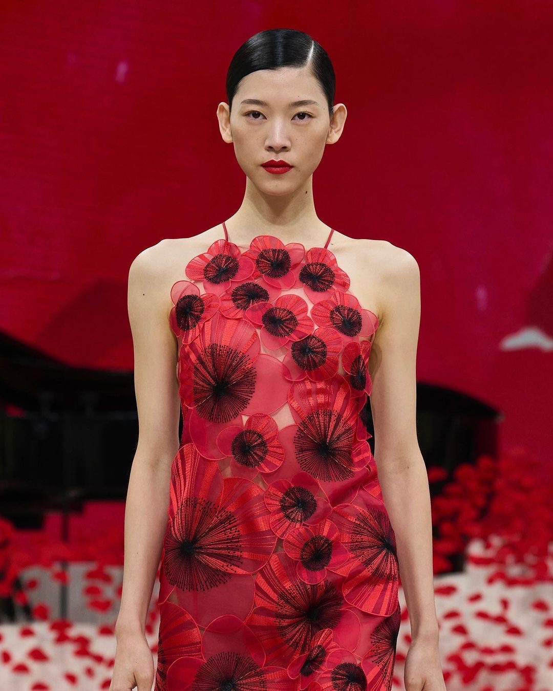 We definitely see hints of Rix-Ueno through the bold prints, and use of hand-painting exhibited throughout Akris Spring 2024 garments.